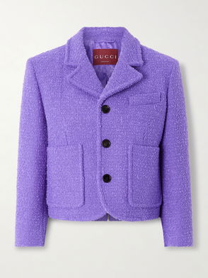 From its Florentine roots to global runways, Gucci’s legacy is stitched with elegance, boldness, and innovation. Crafted in Italy from a soft wool-blend tweed, this single-breasted jacket features buttoned pockets and cuffs for a refined finish.