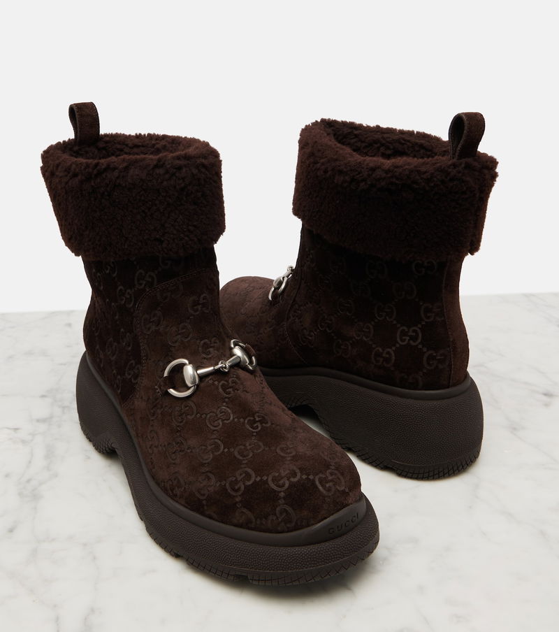 GG jacquard is a quintessentially Gucci fabric that's been part of the house's codes since the early '70s. The Yaga ankle boots are crafted from the brand’s suede iteration of the iconic jacquard.