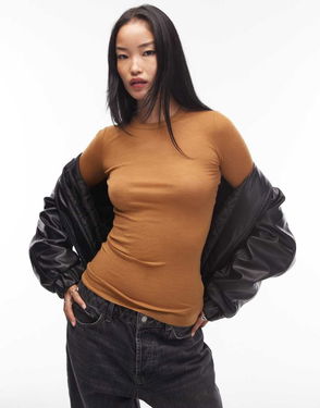 Soft and luxurious knit from Mos Mosh with long sleeves, high neck, and a fine ribbed pattern.