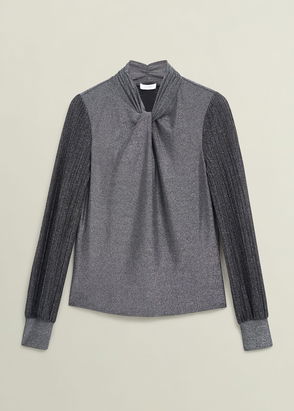 Combining a soft jersey body with an elegant twist neck and sheer georgette sleeves, the alluring Ashley top is the perfect day-to-night layer.