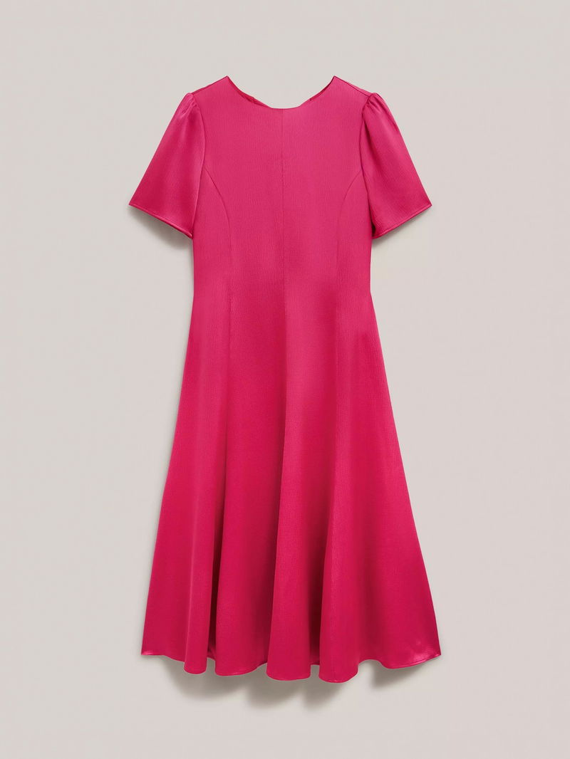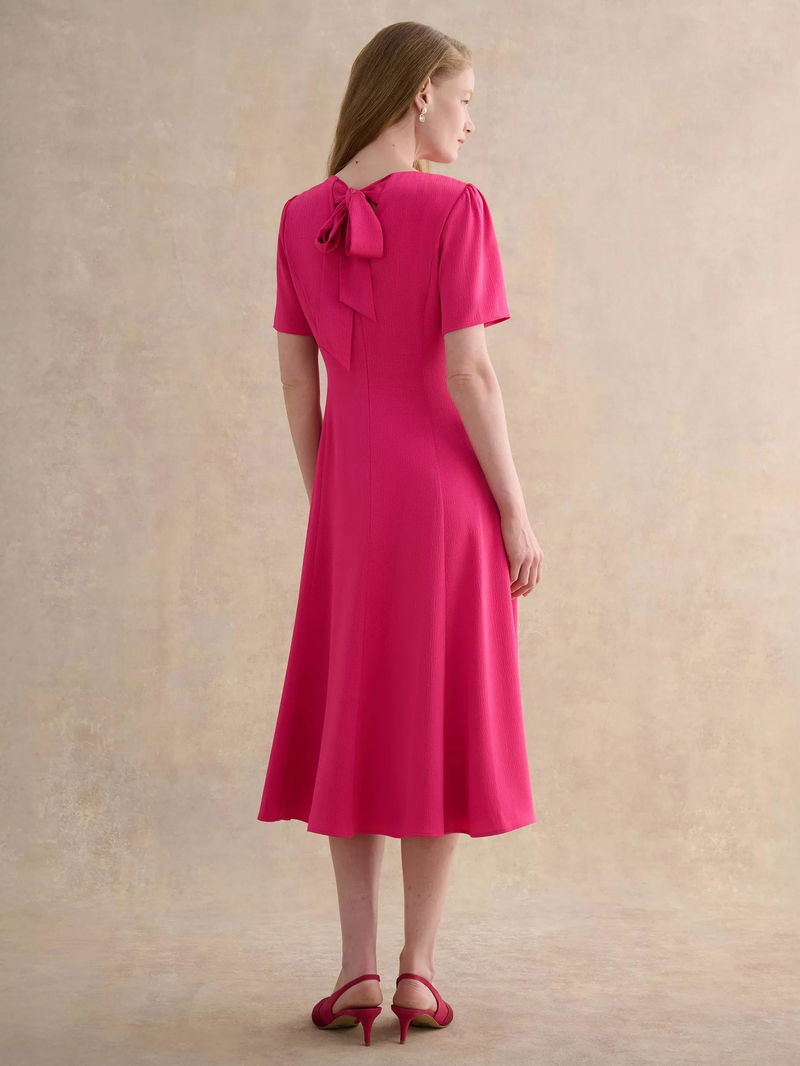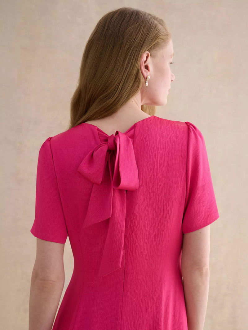 Camille Hammered Satin Bow Back Dress, Bright Pink