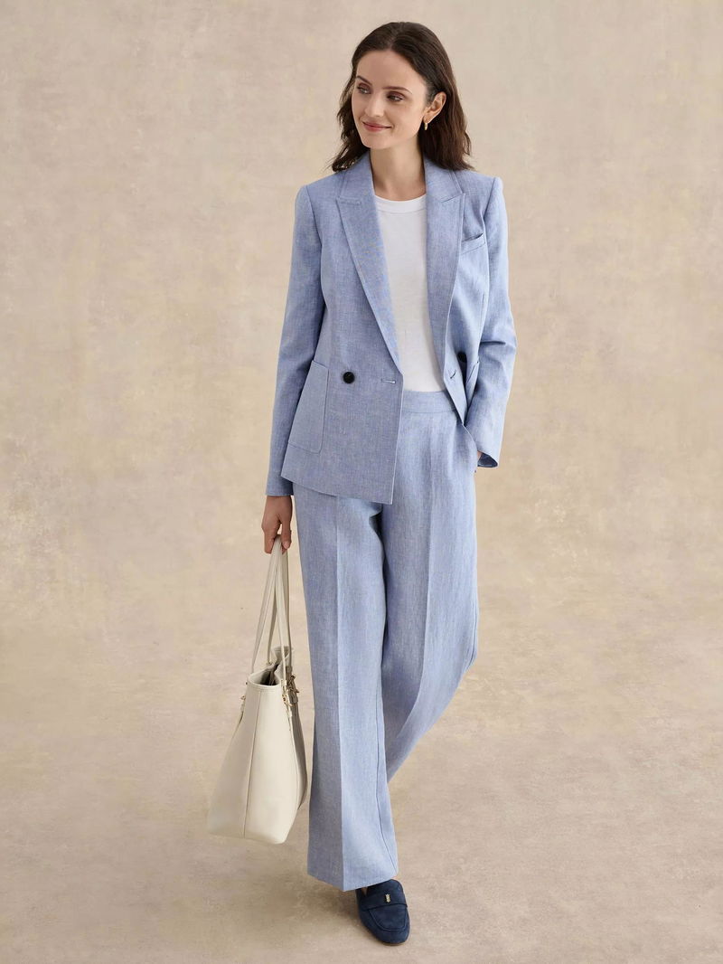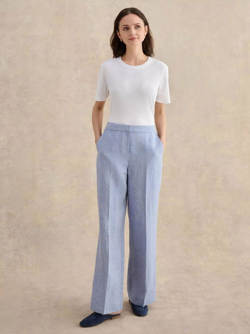 Woven in cross-dyed linen and cut in a wide leg, the Estella trousers were made with all your seasonal tailoring needs in mind.