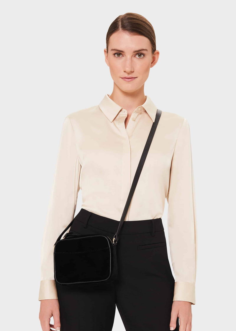 Good to have around. In plush velvet with leather trims and showcasing a boxy camera bag design, Pelham is perfect for carrying your essentials, day or night.