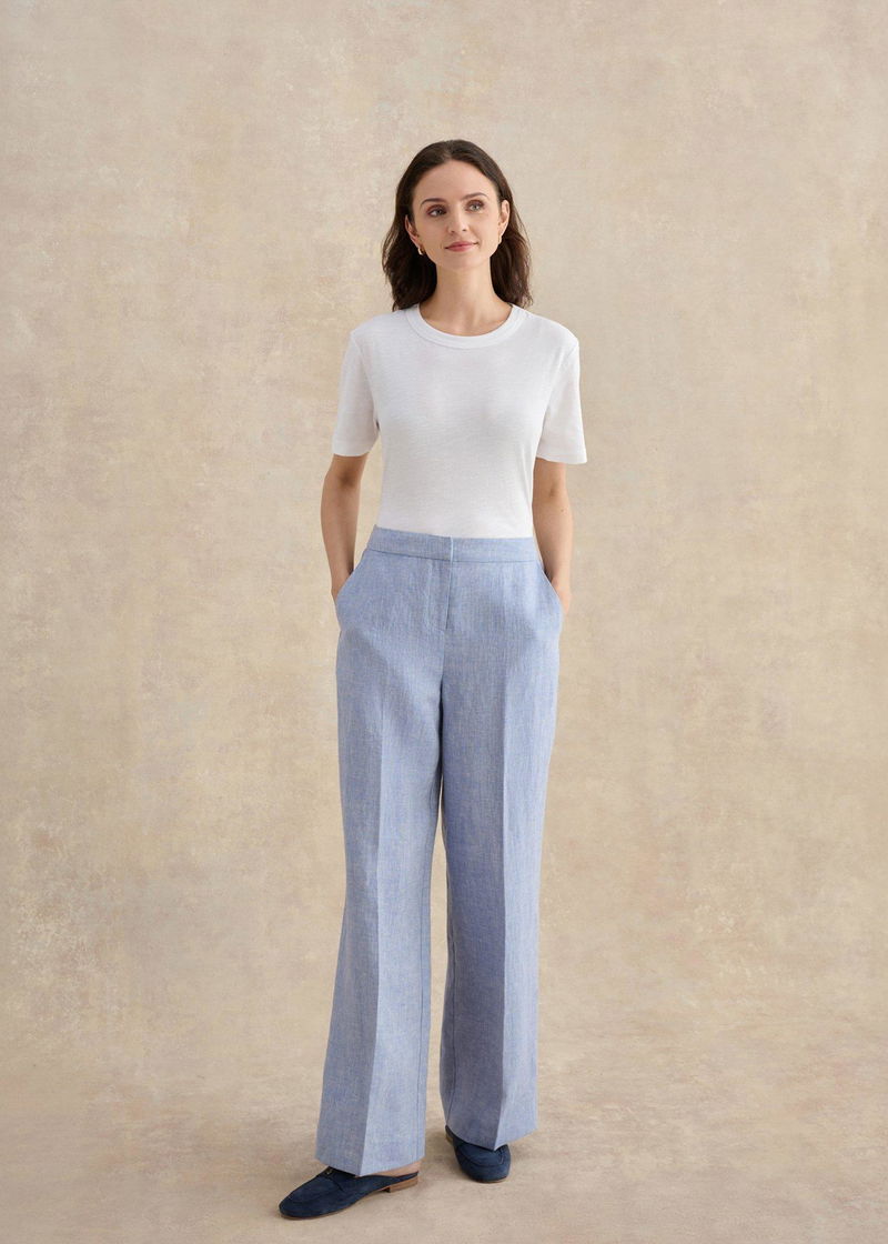 Woven in cross-dyed linen and cut in a wide leg, the Estella trousers were made with all your seasonal tailoring needs in mind.