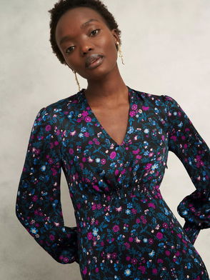 You can never go wrong with an A-line shape. This long-sleeved midi dress by Hobbs features a V-neck and an always on-trend floral print.