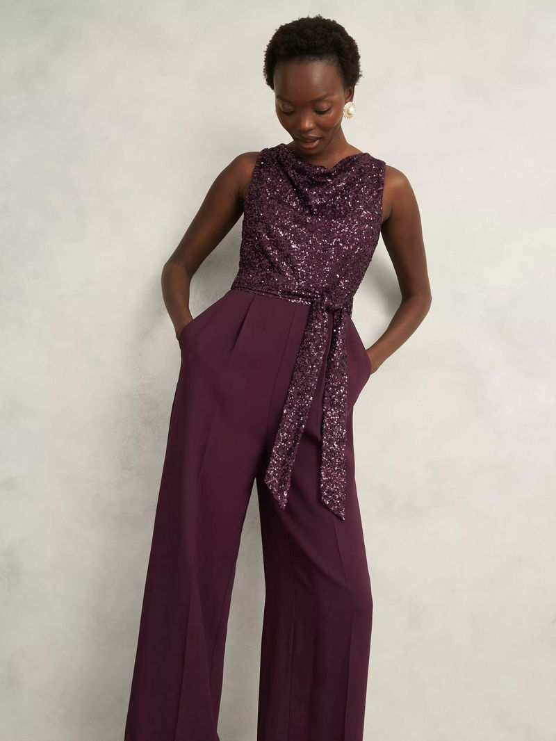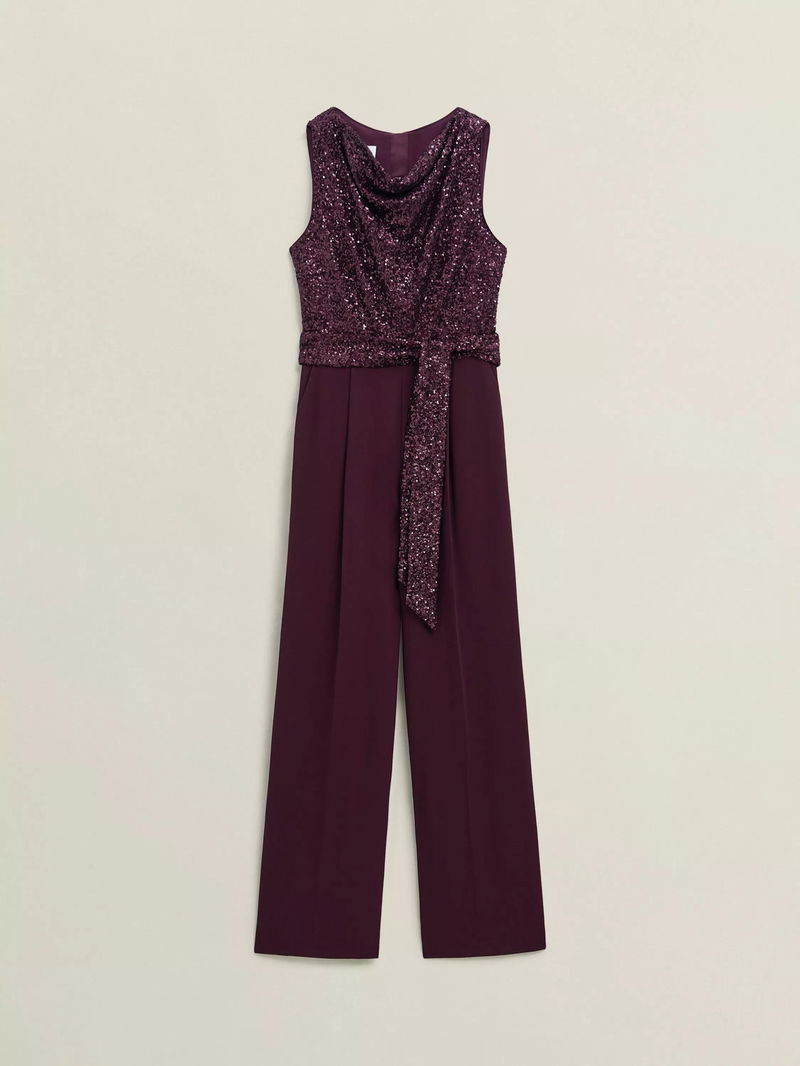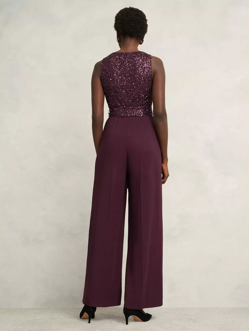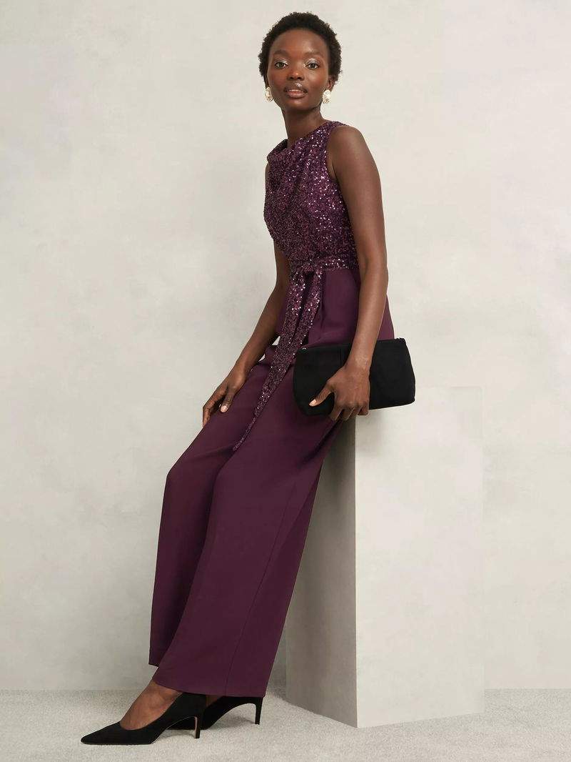 Zuri Sequin Bodice Jumpsuit, Onyx Red