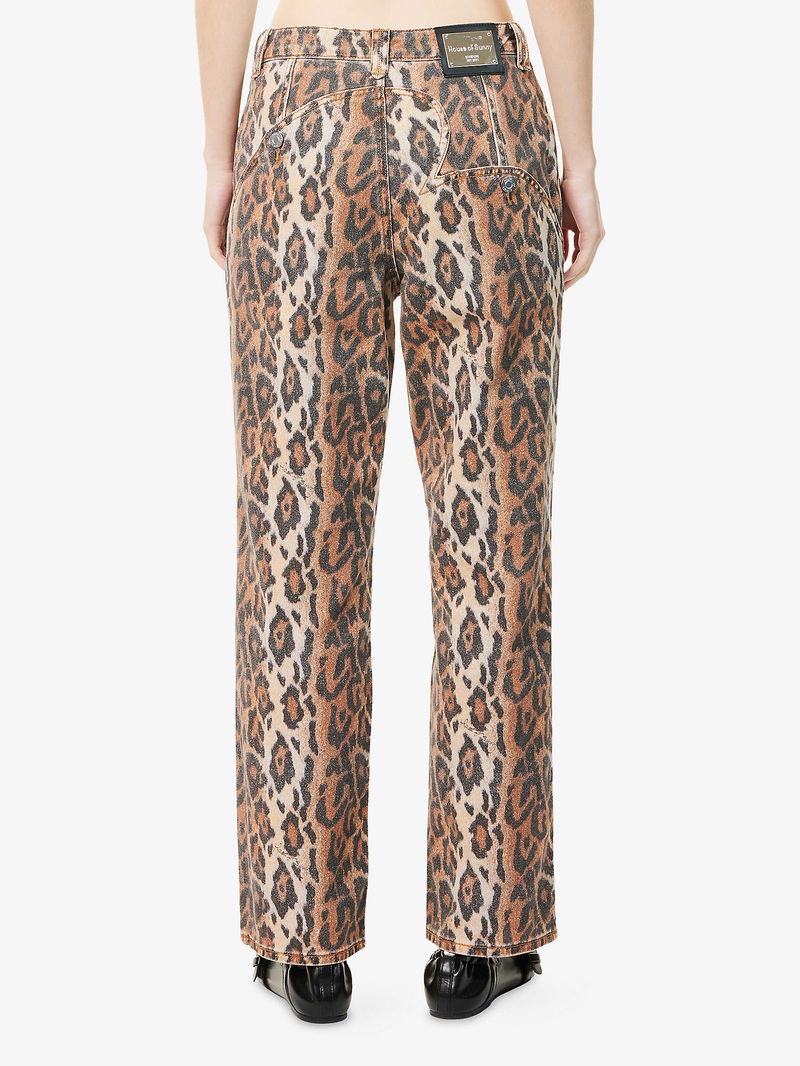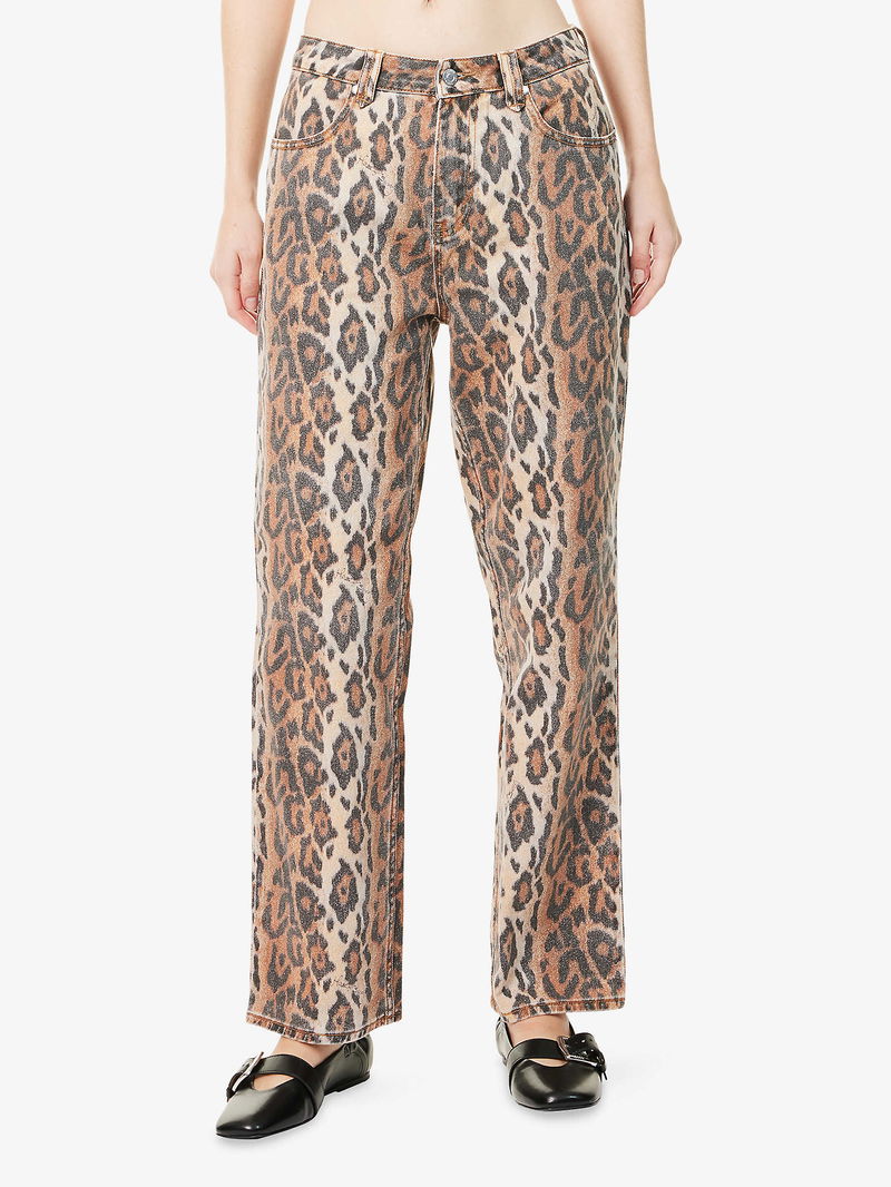 Leopard Jessie Straight-Leg Denim Jeans