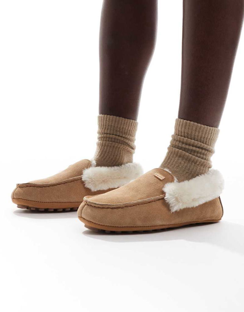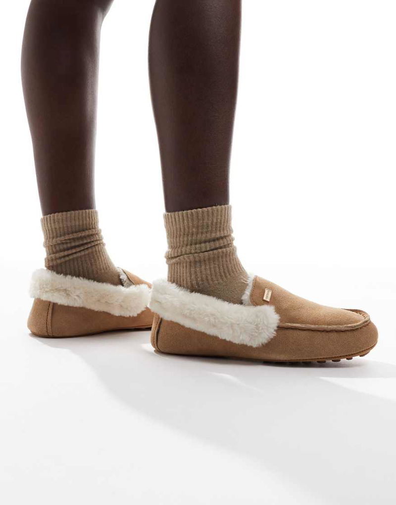 Moccasin Sherpa Slippers In Tan