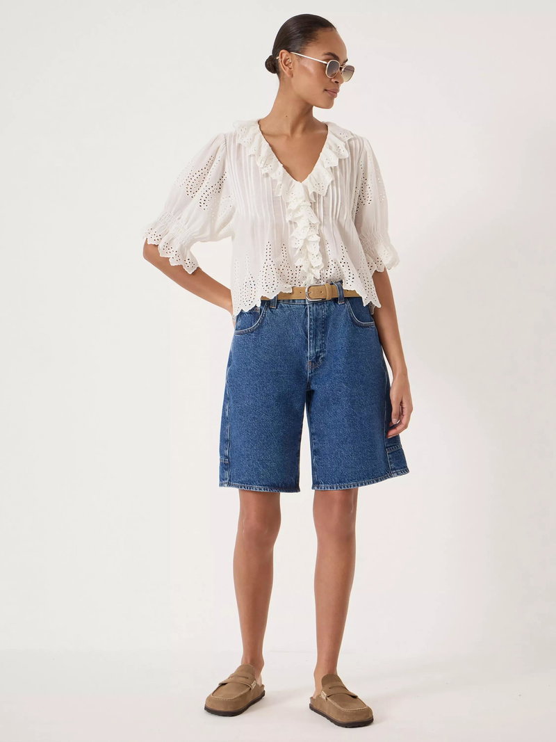 Cut to a relaxed fit with a mid-rise waist, these shorts have a slimmer fit around the hips that flares subtly outwards towards the knee for a sculptural, on-trend look.