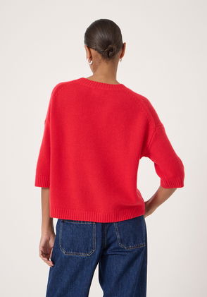 Chunky Short Sleeve Pure Cashmere Top, Red
