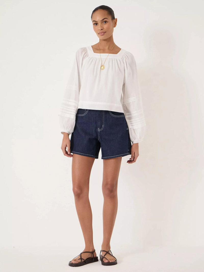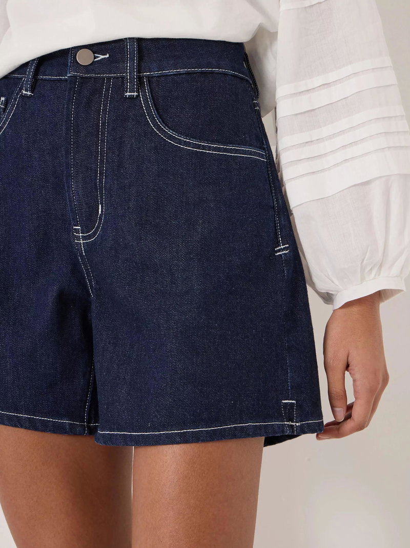 A pair of high-rise denim shorts. The comfortable fit moves with you, making everyday moments feel effortless. Layer them your way for relaxed days, spontaneous plans, or a touch of playful charm on summer outings.