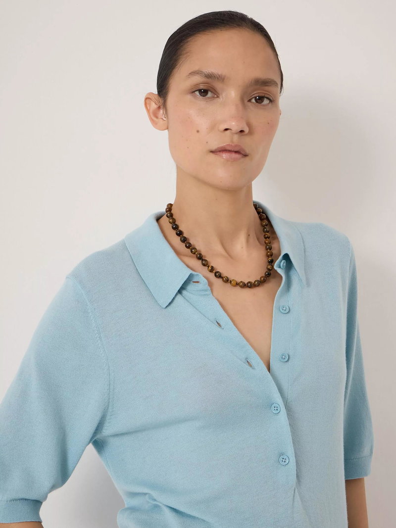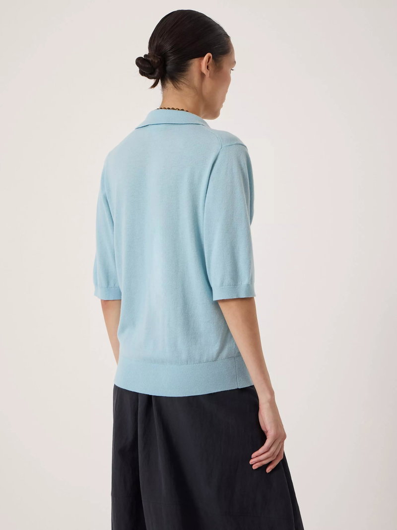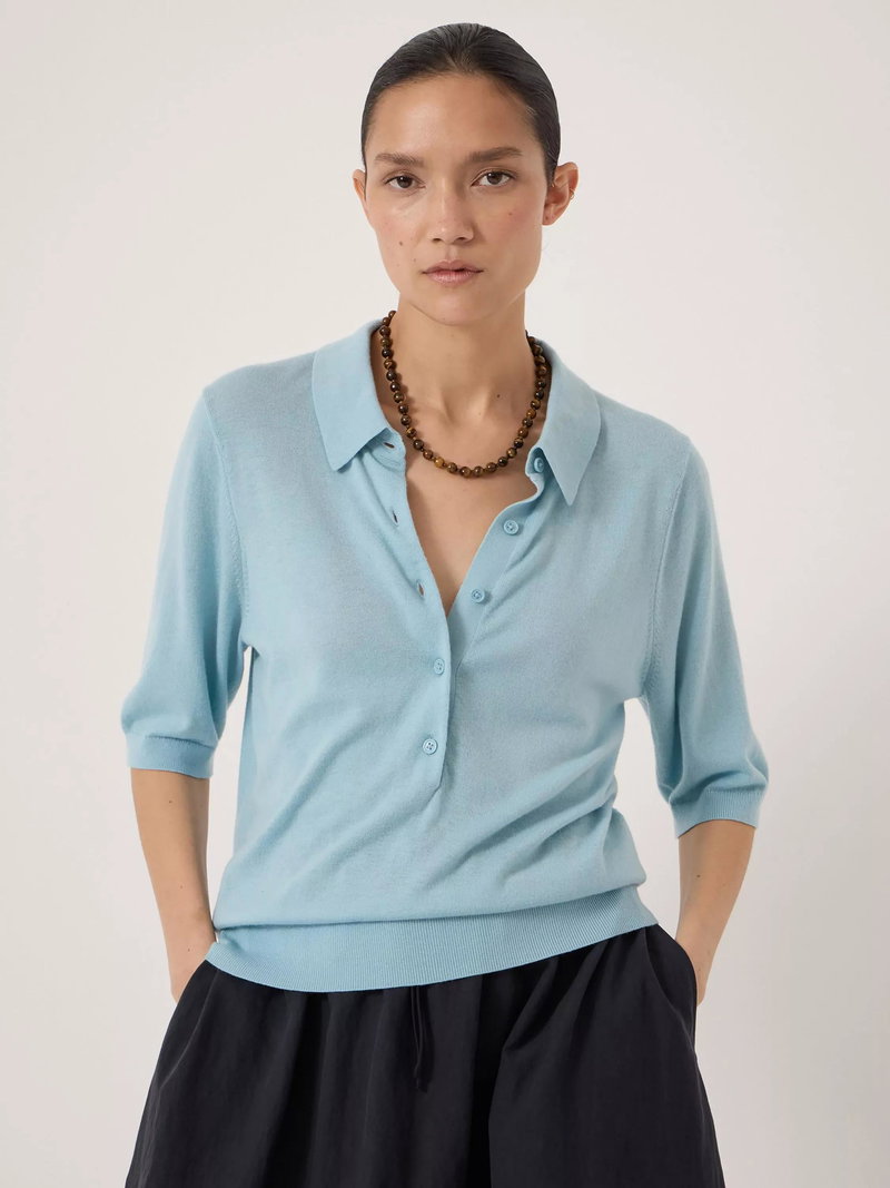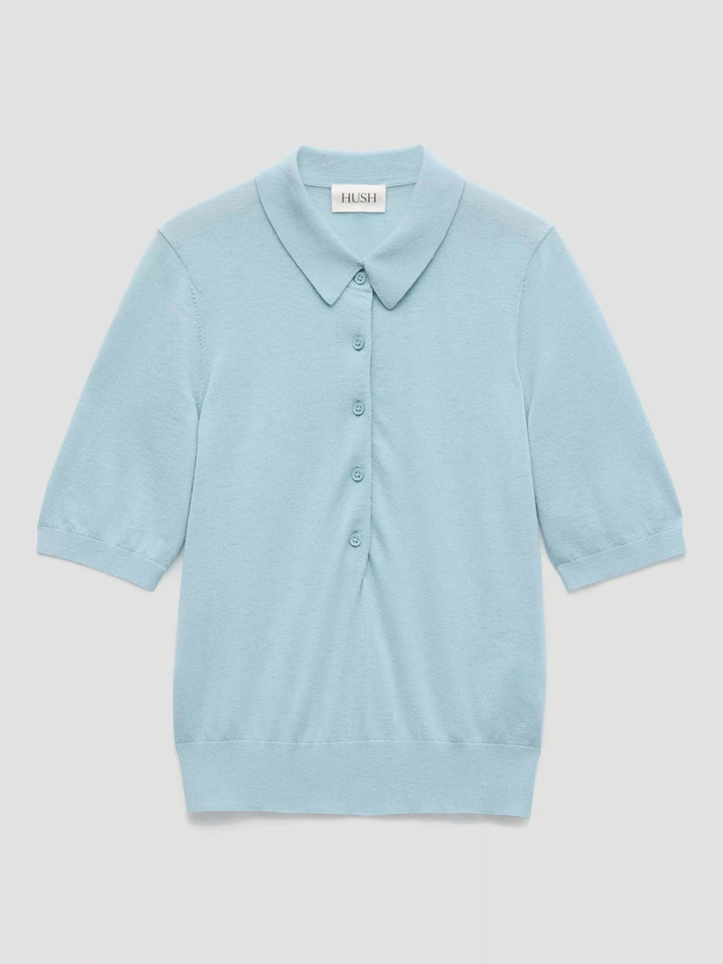 Spun from a fine wool blend, this knit polo shirt from HUSH is framed with a collar neck and elbow length sleeves, the plain design means it goes with everything. Casual, cool, and perfect from morning on.
