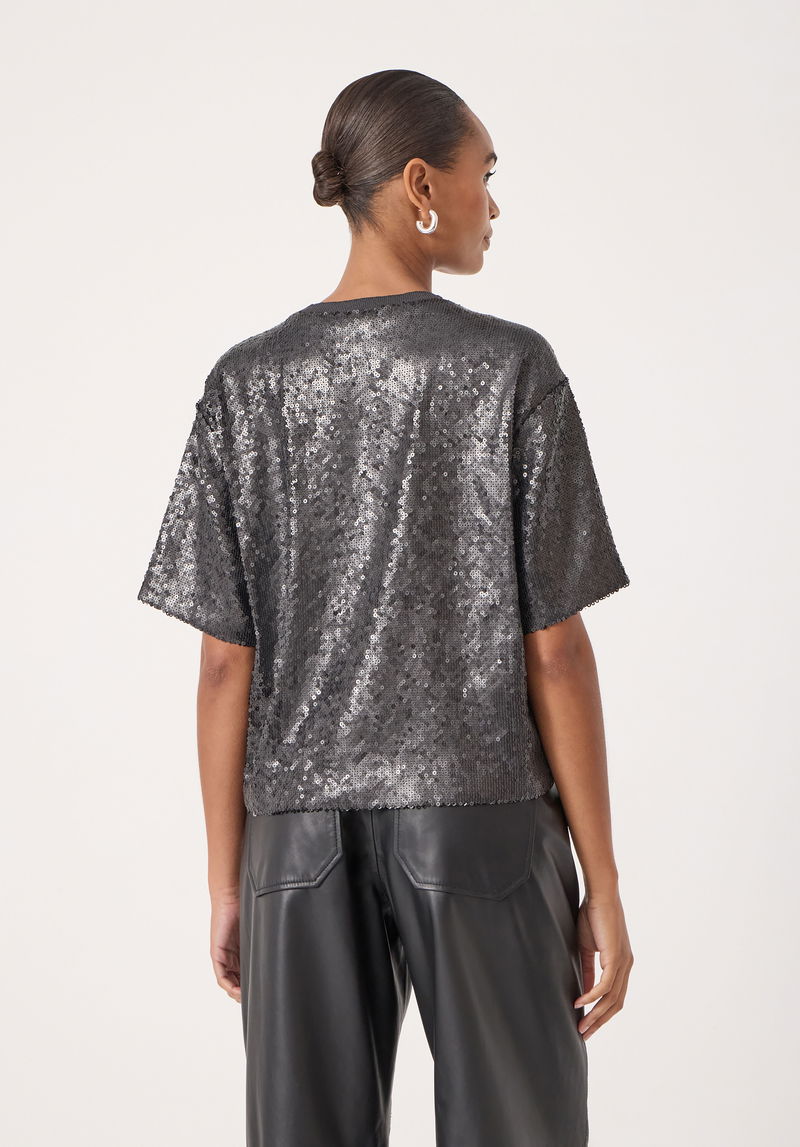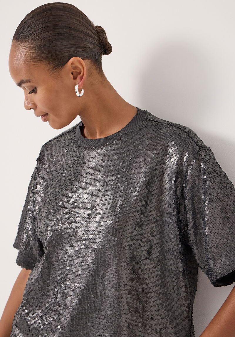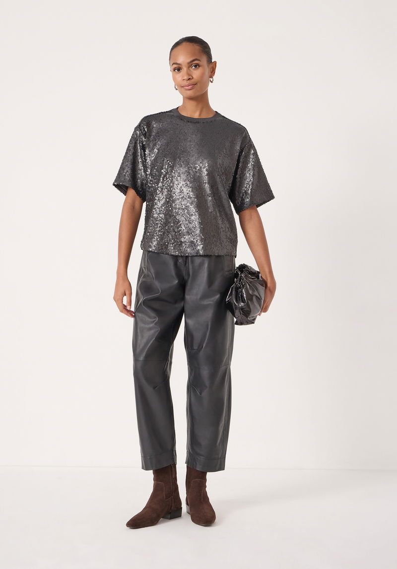 Think sequins need to be in-your-face and dazzling when it comes to partywear? The ones on our Holly T-shirt prove otherwise. They're matte (rather than glossy) so they subtly catch the light without feeling too much. We love pairing this style with everyday denim to dress it down, but leather trousers are an easy way to push the boat out effort-wise in a low-key way.