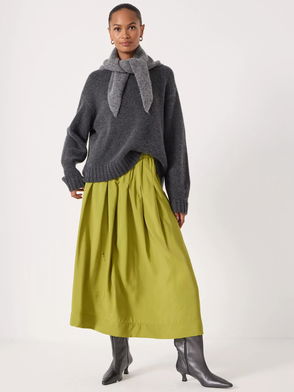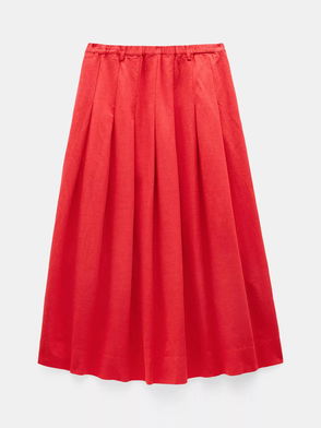The reason we've used so much of our linen-blend fabric this season? It's woven with viscose, so it feels less crunchy and more drapey – demonstrated perfectly by our Ivy midi skirt. We've stitched pleats in place at the waist to reduce bulk and add lovely swishy volume at the hem, for that effortlessly laid-back look we love.