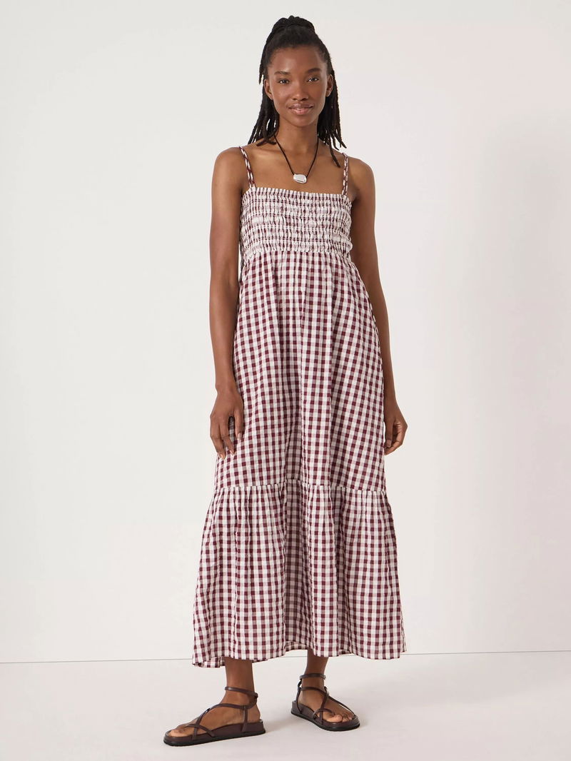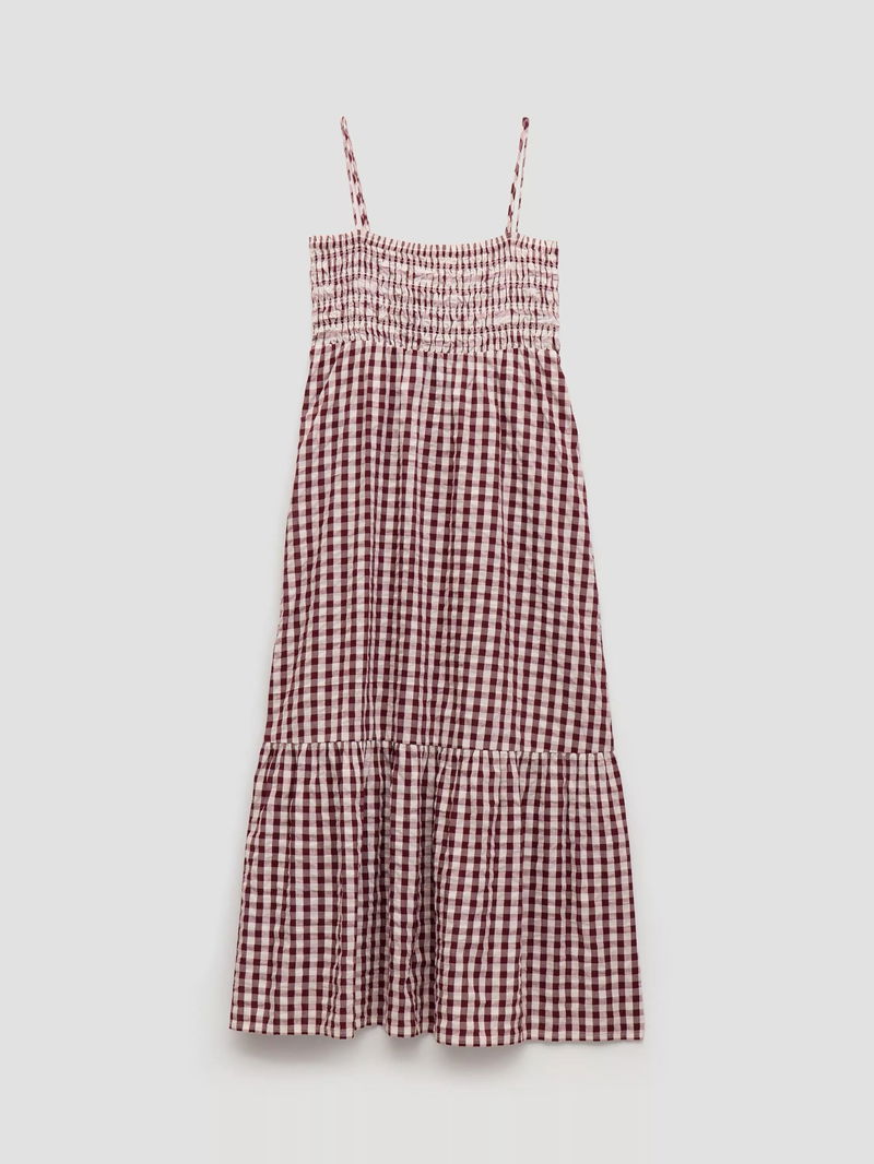 Leni Shirred Gingham Beach Dress