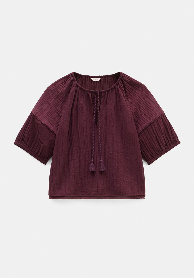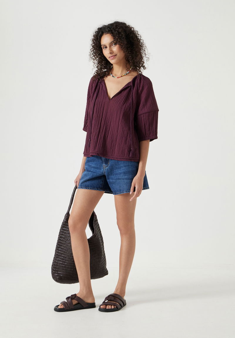 That go-to holiday shirt? The one that’s packed every year? This is it. We’ve given our Mae blouse a relaxed, breezy fit that’s great for warmer weather, in an easy-care, crinkled fabric for a bit of texture — and because there are much better things to be doing on holiday than ironing.