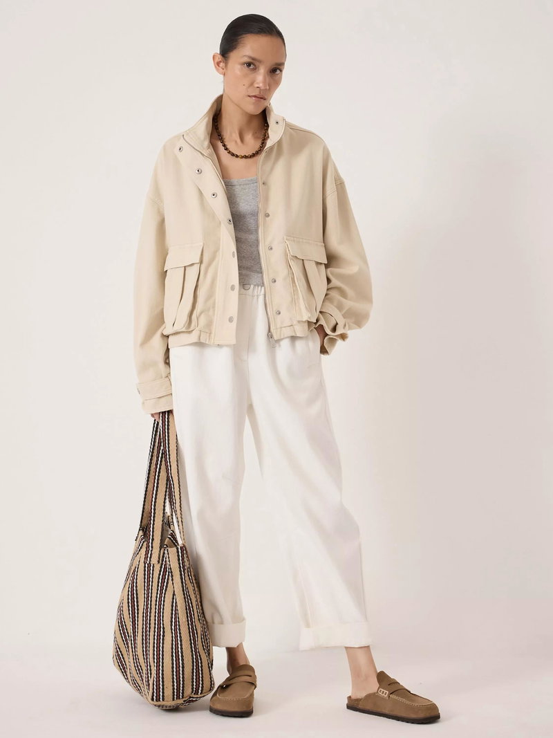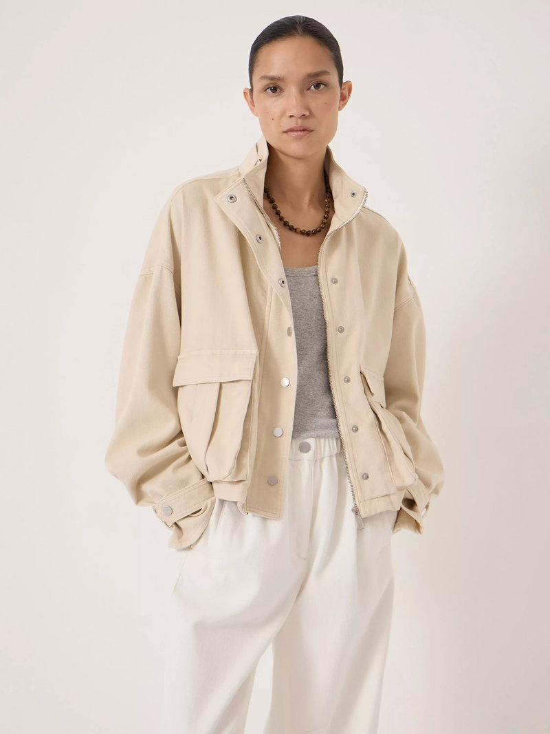 Then there's all of the styling details that make it feel so effortless: the roomy front pockets, the easy snap-button fastening and the funnel neck. This time round, it's made in super-soft denim that drapes beautifully.