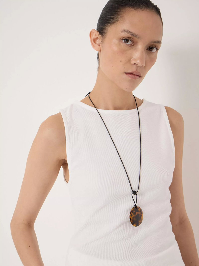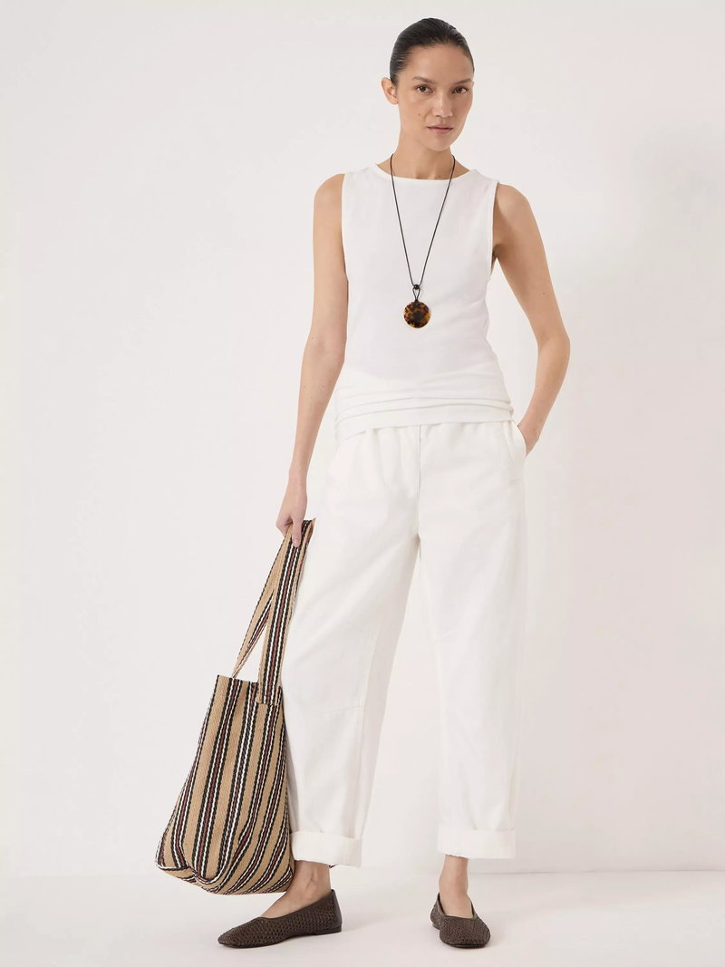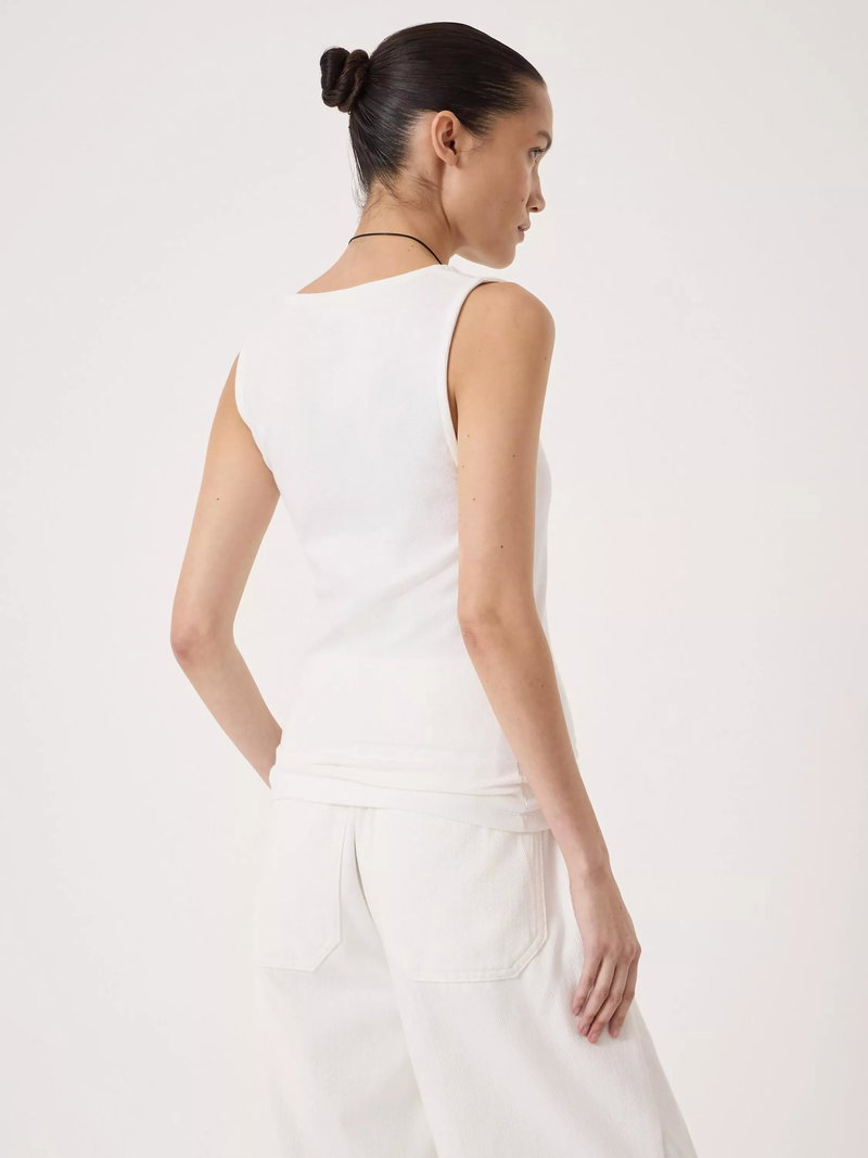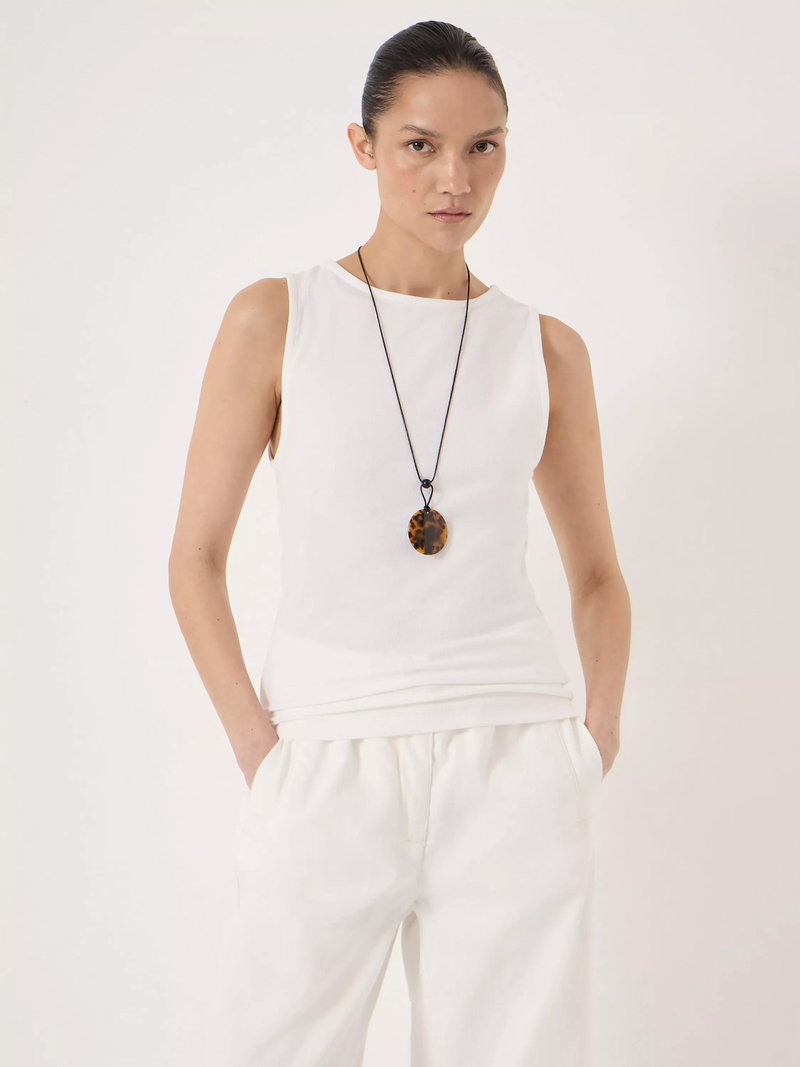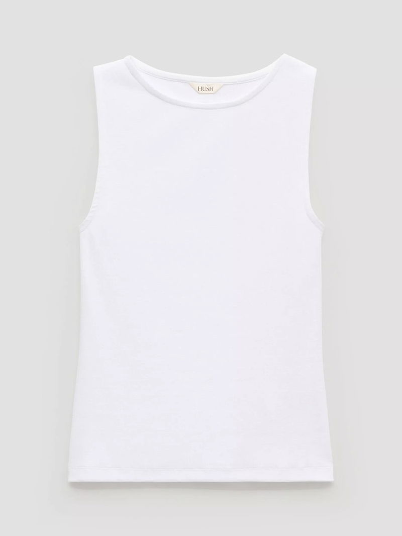 Softly ribbed sleeveless vest top by HUSH, crafted from a cotton blend with a boat neck. Made for easy days and endless sunshine.