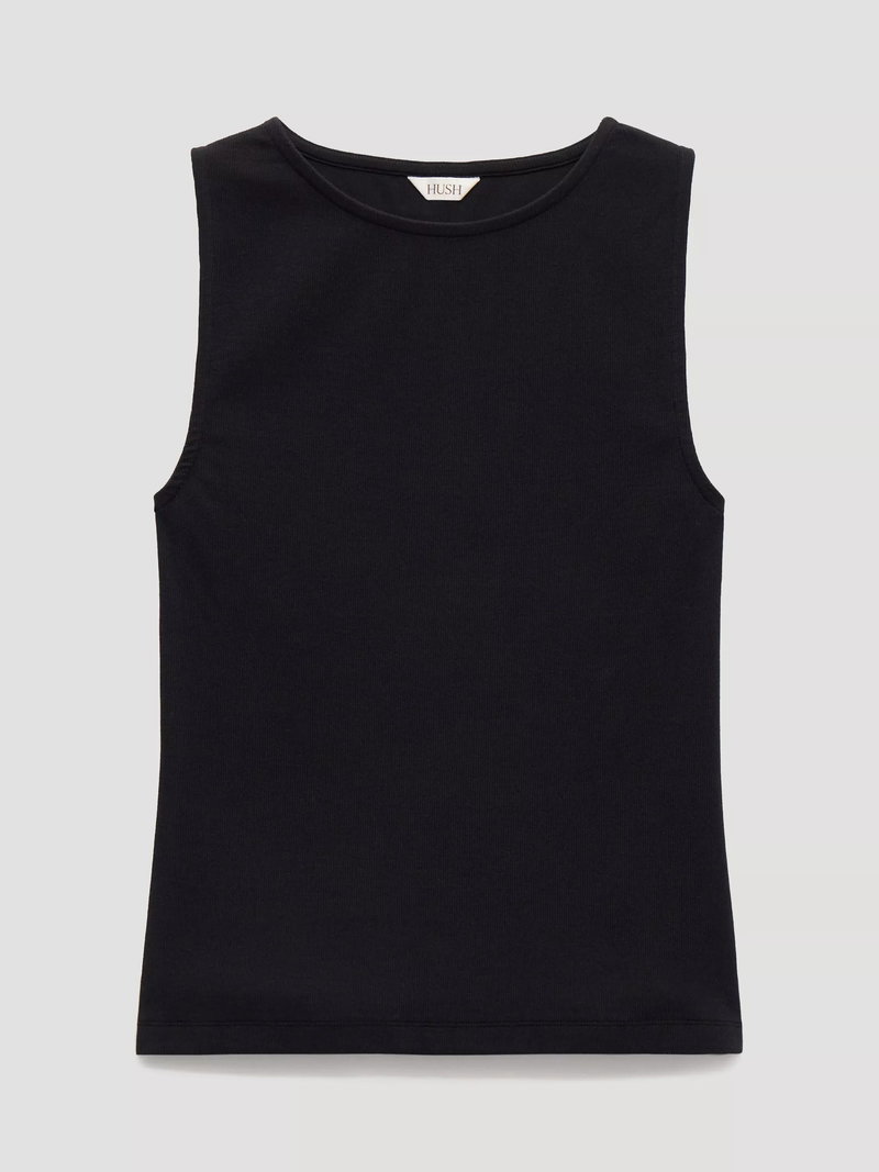 Softly ribbed sleeveless vest top by HUSH, crafted from a cotton blend with a boat neck. Made for easy days and endless sunshine.