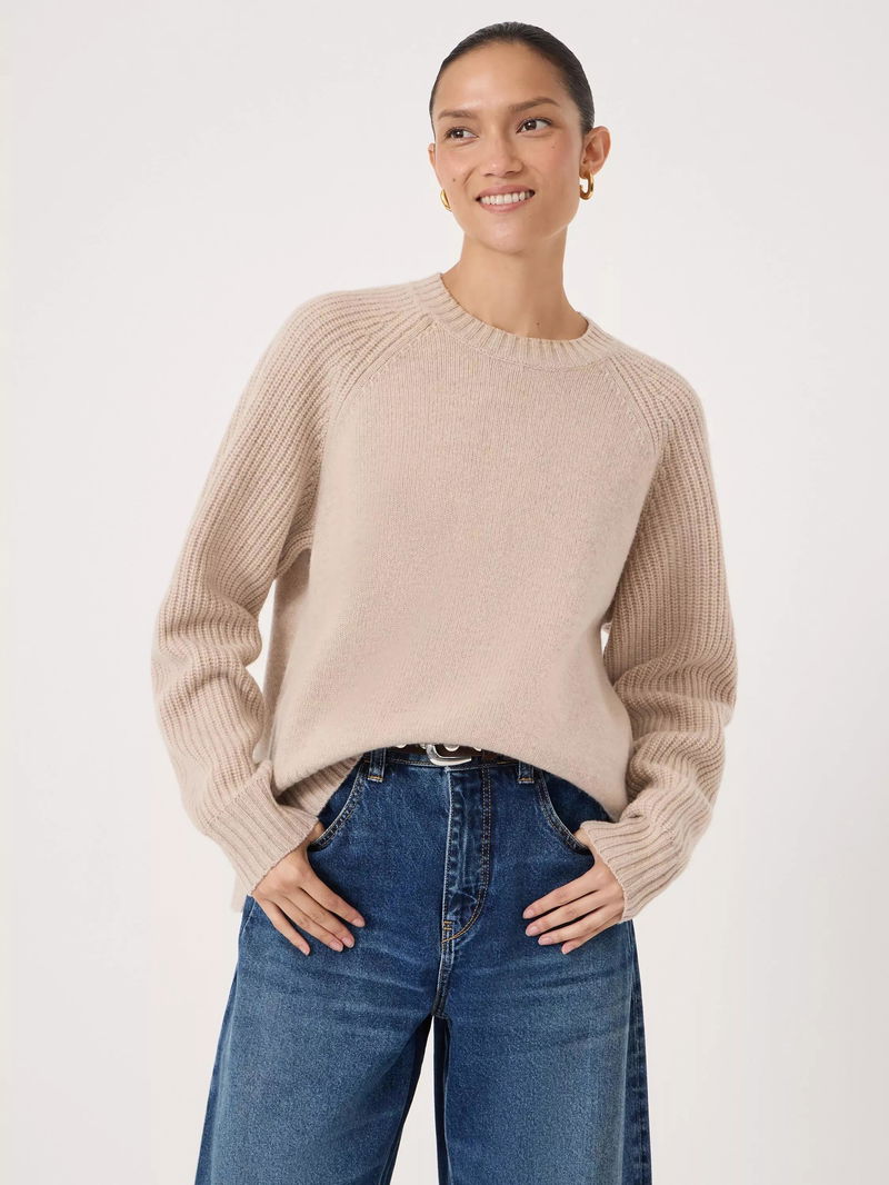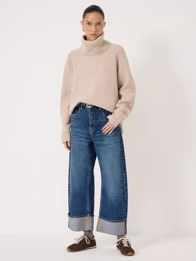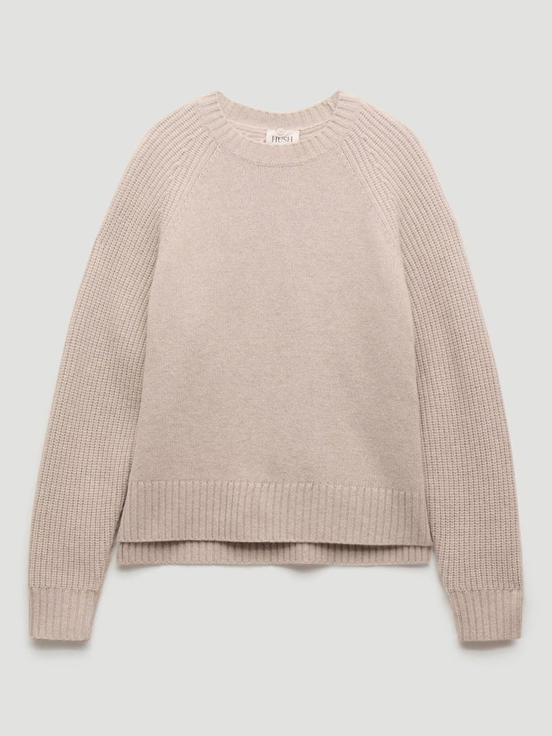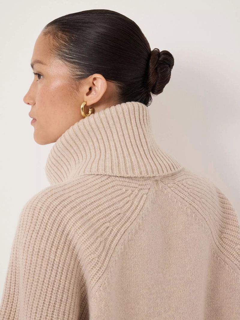 A medium-weight merino wool jumper by HUSH. With a detachable roll neck, its textured knit and relaxed style offers warmth and ease.