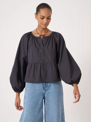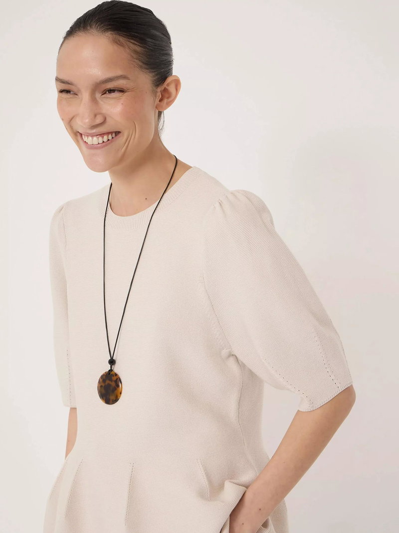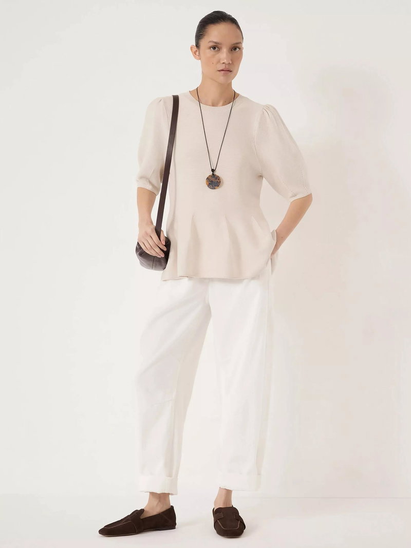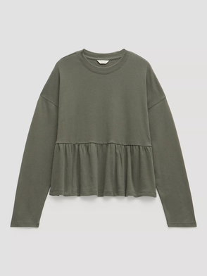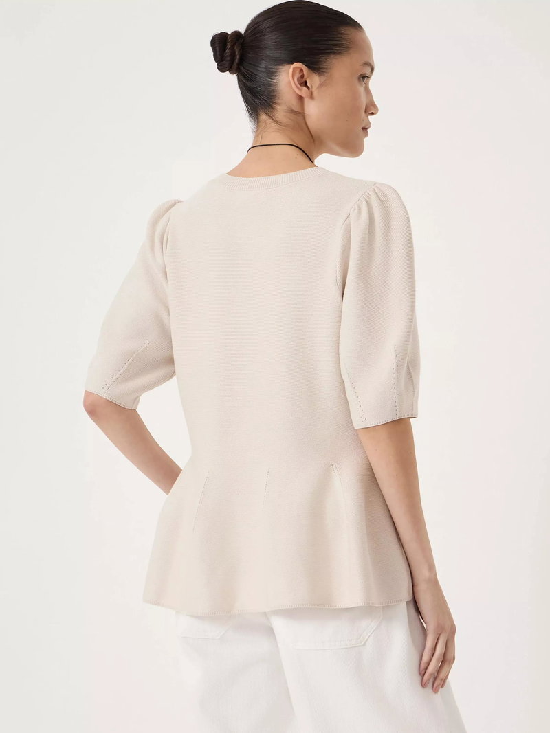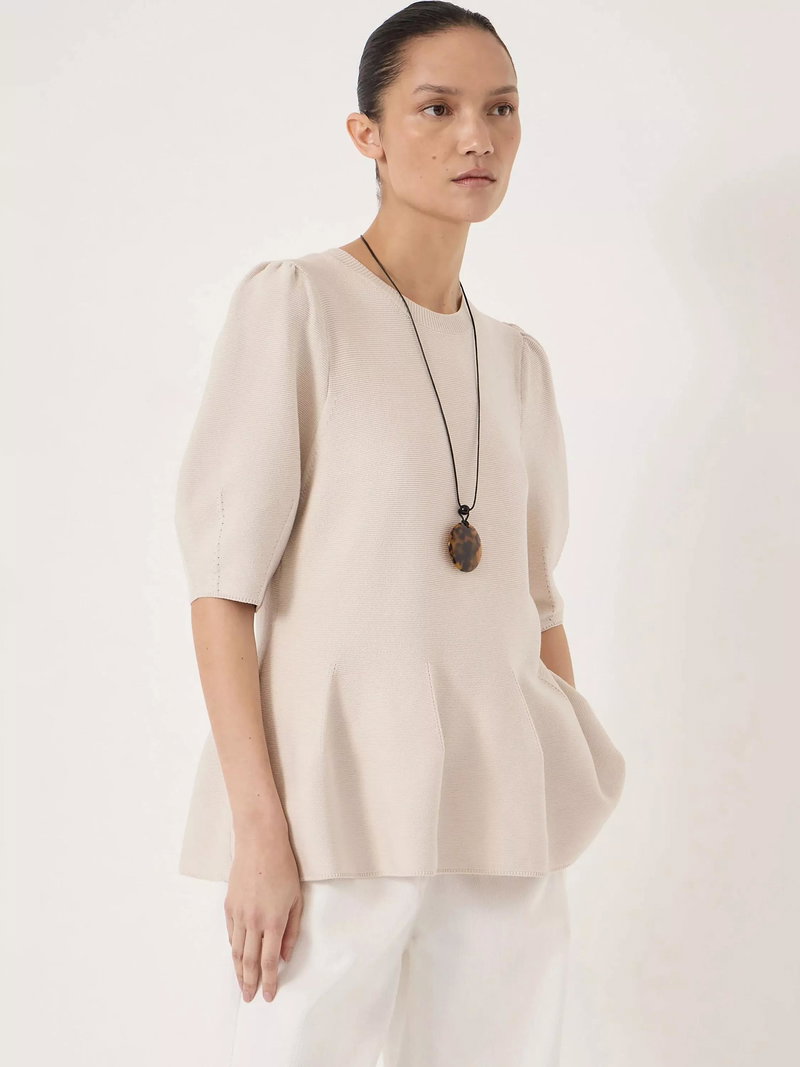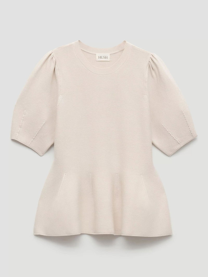 Featuring a round neck, elbow length sleeves and a peplum hem, the plain design means this top goes with everything.