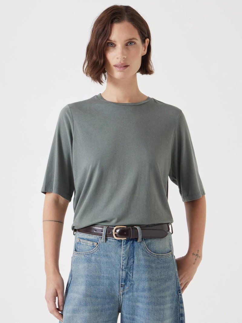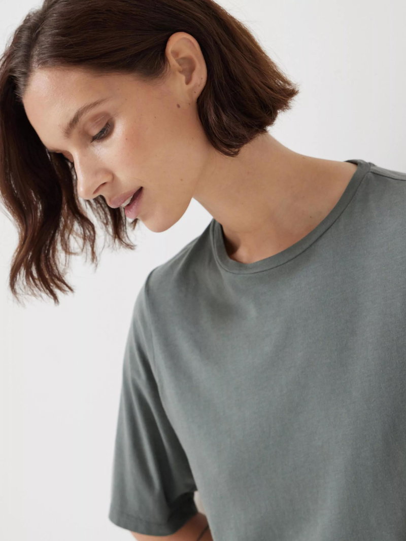 Looks like a regular everyday tee - but it's not. Every detail is purposeful, like the roomy sleeves which stop at the elbow for a more laid-back feel and the relaxed fit. Then there's the extra-soft cotton-viscose fabric, chosen because of the way it drapes effortlessly.