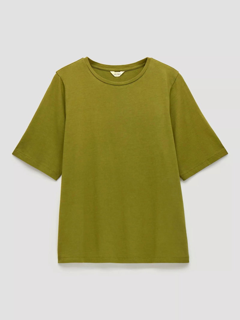 Hush presents Reece. A Cotton Blend Short Sleeved T, designed with a round neck and drapey features.