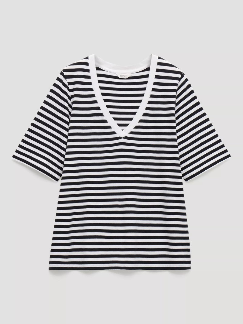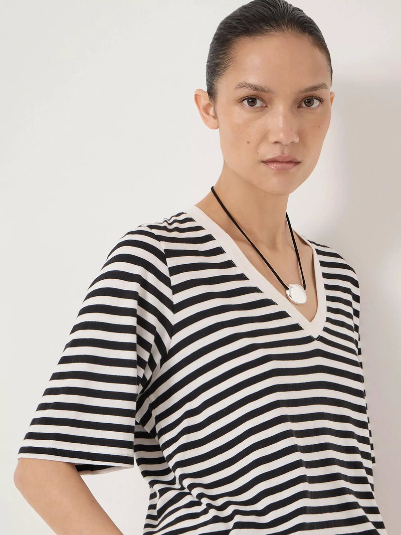 A striped V-neck T-shirt by HUSH. Its relaxed fit and soft feel keep you comfortable, while the smart design adds instant style to your everyday look.
