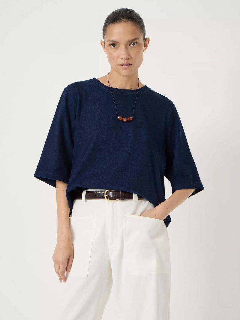 A denim T-shirt from HUSH, made from a soft cotton blend. With a crew neck and short sleeves, it's an effortless style for daily dressing.