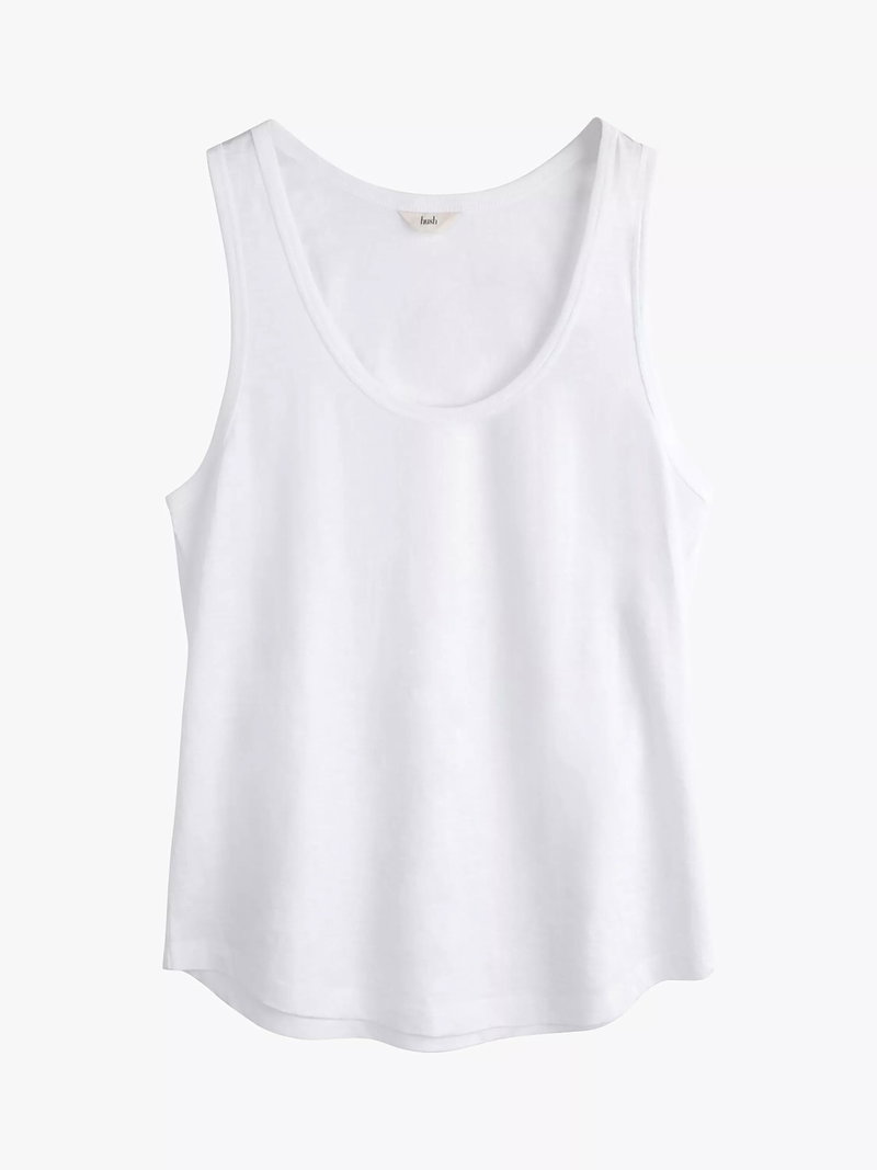An everyday slub vest top by HUSH, crafted from soft cotton. Simply cut with a scoop neck, the plain colour means it goes with everything. Made for easy days and endless sunshine.