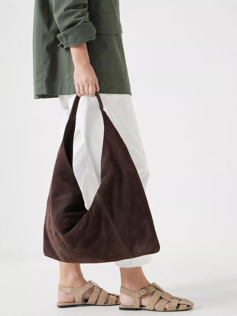 HUSH's hobo tote bag has plenty of room for all the day-to-day essentials, and they've incorporated the handle into the overall design for a clean silhouette. The best bit is the supple suede fabric which gives it that effortless, slouchy shape.