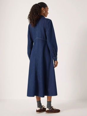 Zip Long Sleeve Denim Midi Dress, Mid Authentic Wash
