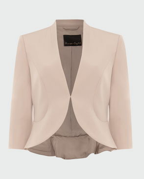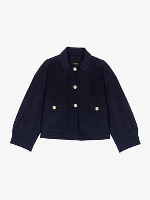 The Tilla jacket is a simple and feminine car coat with a soft silhouette. It has a V-neck and an open front, and it has a casual fit. The sleeves are long and voluminous with a round shape, and the jacket is cut at the hips.