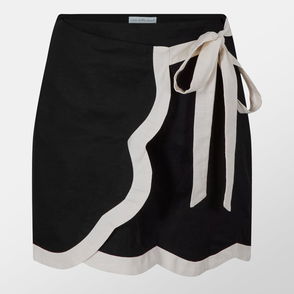 Skirt, Mini length, Crepe, Embroidered, Scalloped hem, Elasticated waistline, Slips on, Fully lined.