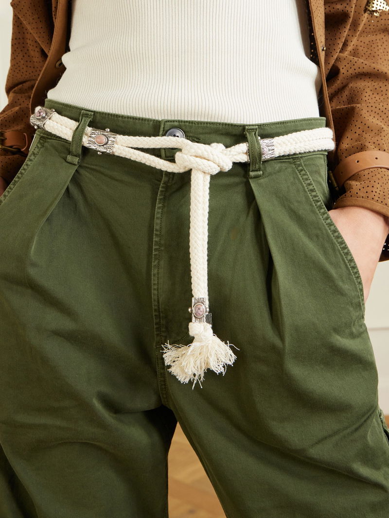 Isabel Marant's 'Aleea' belt captures the brand's bohemian side perfectly. Made from cord, it's artfully embellished with silver-tone loops encrusted with stones and has tasseled ends. Secure it around your waist by simply tying it into a knot.
