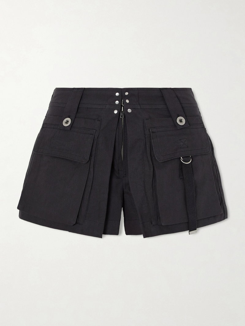 Isabel Marant’s 'Barta' shorts combine comfort with everyday versatility in a playful skort design—appearing as a mini skirt at the front and shorts at the back. Made from rigid cotton, they feature utility-inspired cargo pockets and sit at a mid-rise. Pair with boots and a top for a stylish, festival-ready look.