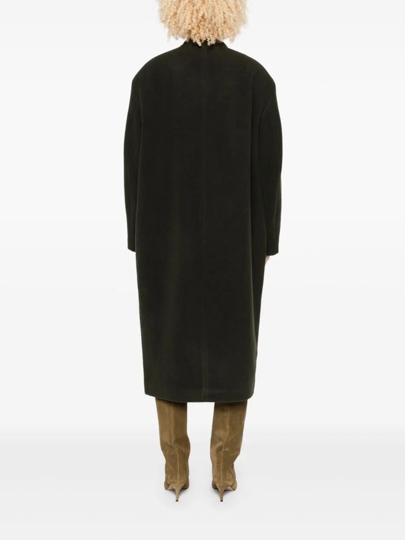 Button-front Patch-pocket Coat - Green