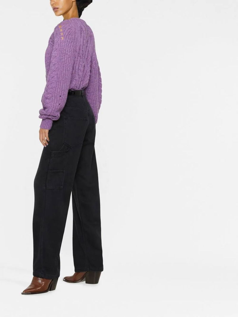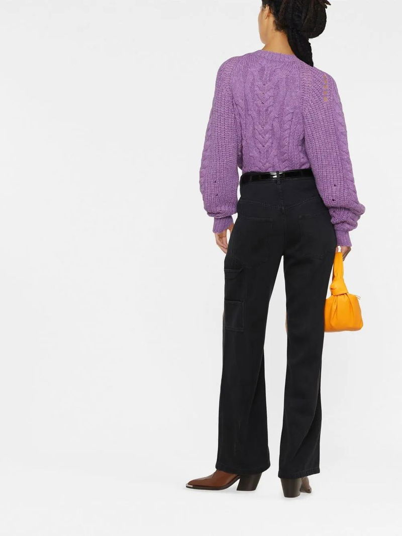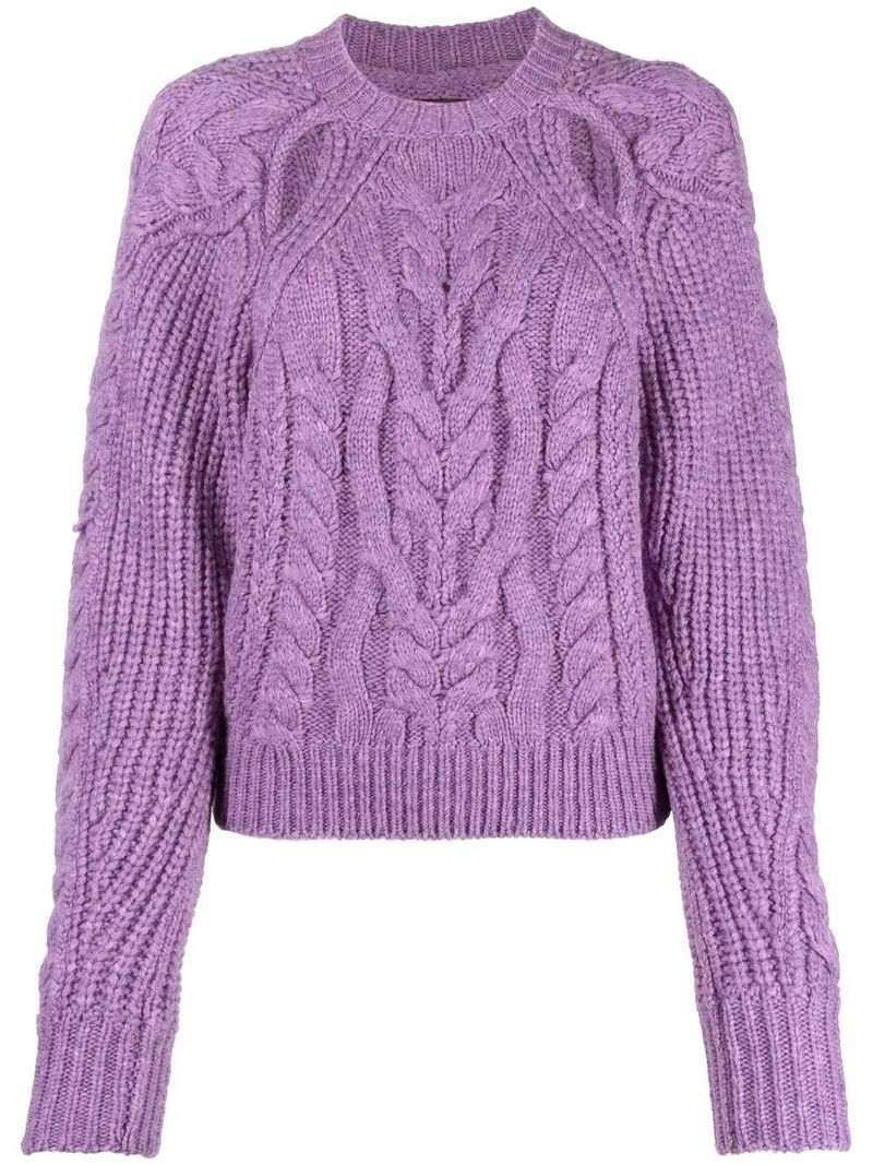 amethyst purple wool blend chunky cable knit cut-out detailing crew neck long sleeves straight hem
