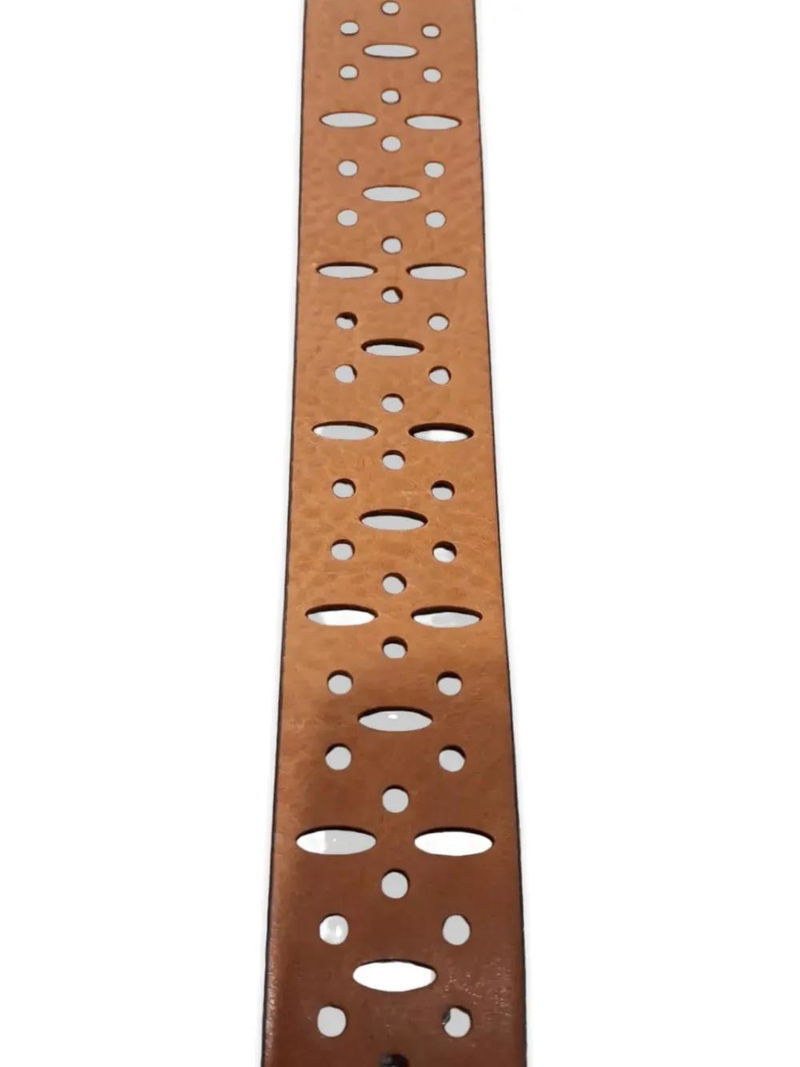 Brown, cut-out design, gold-tone hardware.