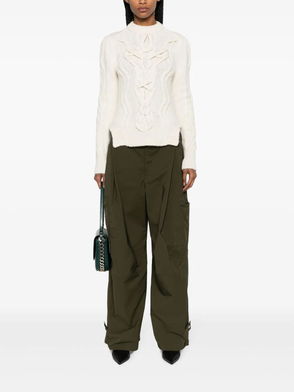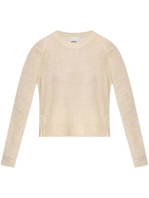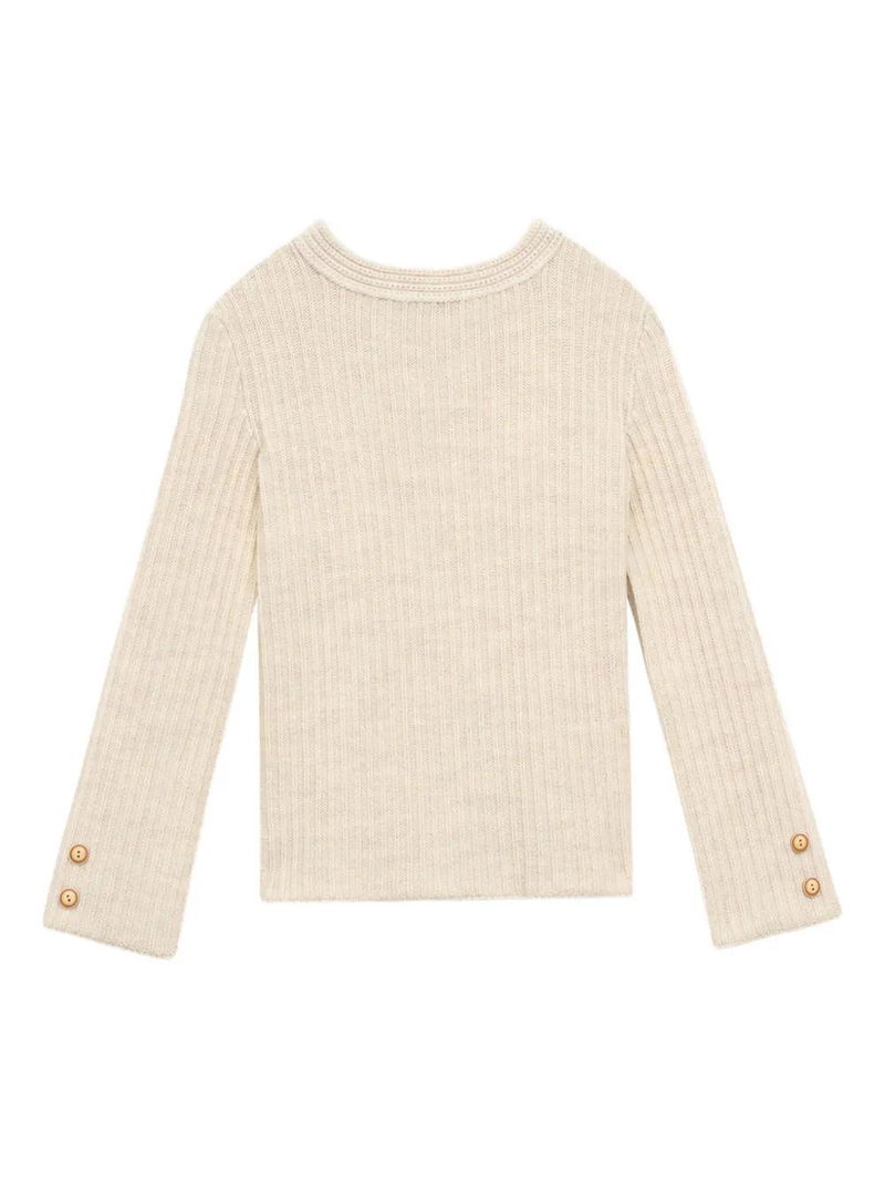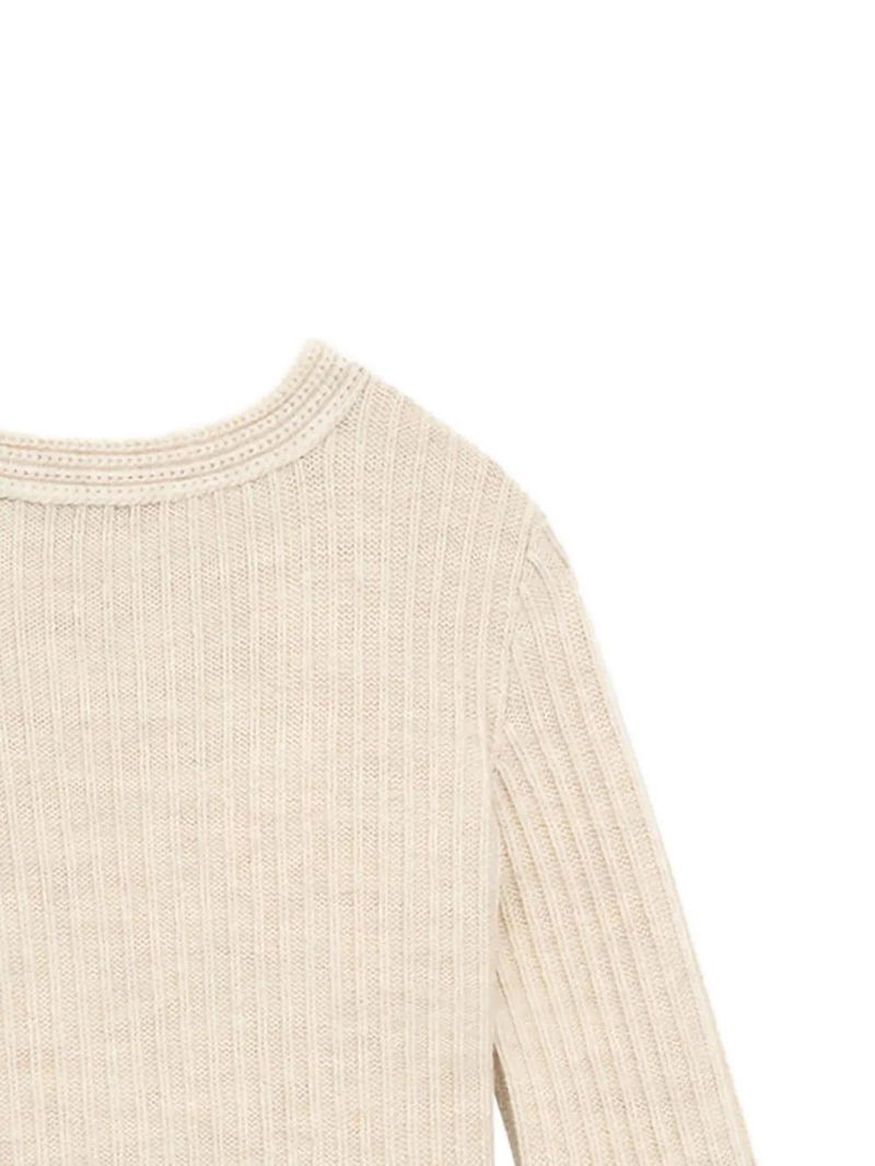 ecru ribbed knit round neck long sleeves buttoned cuffs