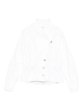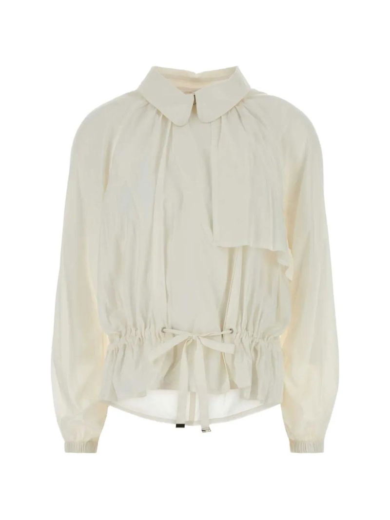 White, gathered detail, drawstring fastening, long sleeves.