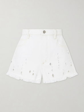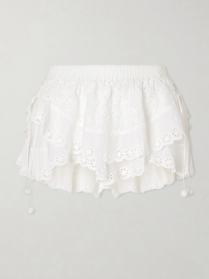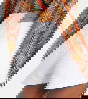 Isabel Marant’s skirt has a festival-ready feel. Knitted from a cotton and silk-blend, it features crochet detailing throughout and is cut to a mini length. Reference the SS26 runway and style yours with a belt and a crocheted top.