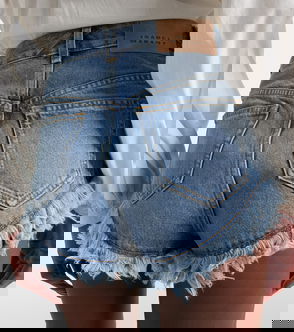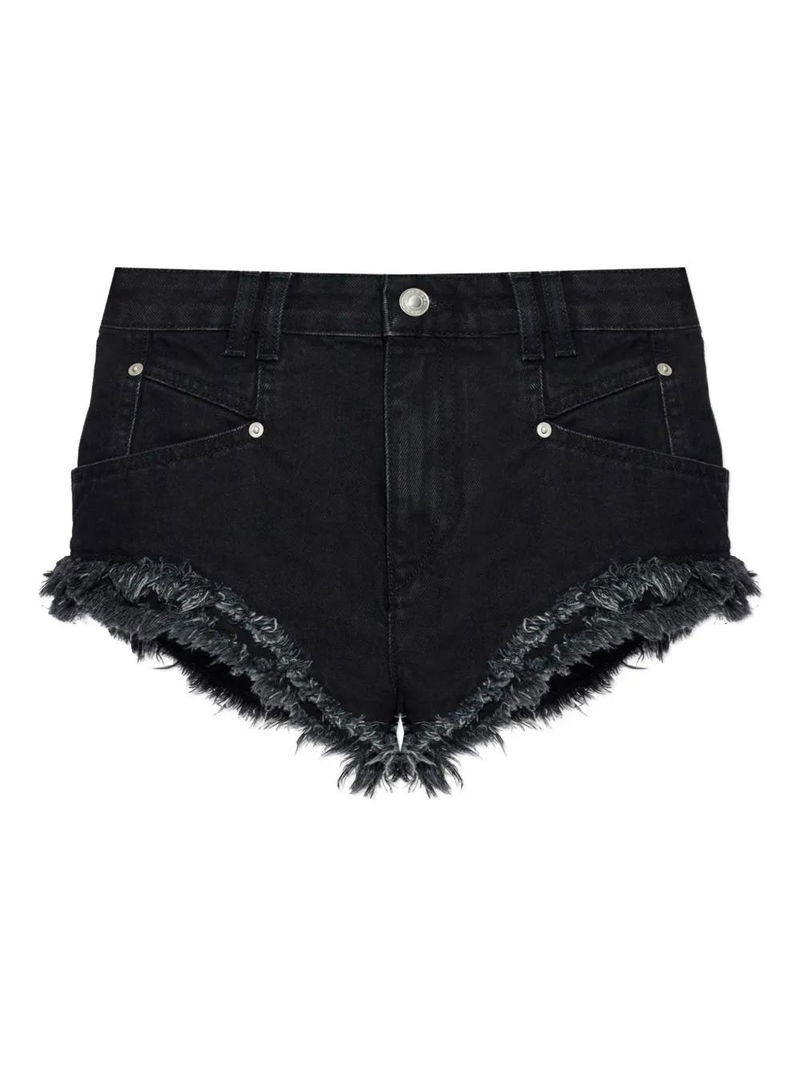Black, fringed hem, stud detailing pockets.