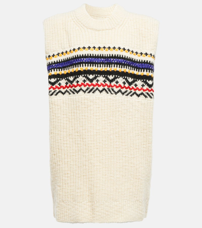 Brighten up your cold-season edit with the decorative jacquard patterning on the Gresleyge vest from Isabel Marant, Étoile. This sleeveless design is expertly knit from a soft wool-blend for a relaxed fit.