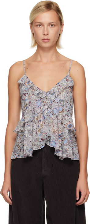 Cotton hopsack camisole. Cutouts with embroidered detailing throughout.· Plunging V-neck· Fixed shoulder straps· Darts at bust· Racer back.