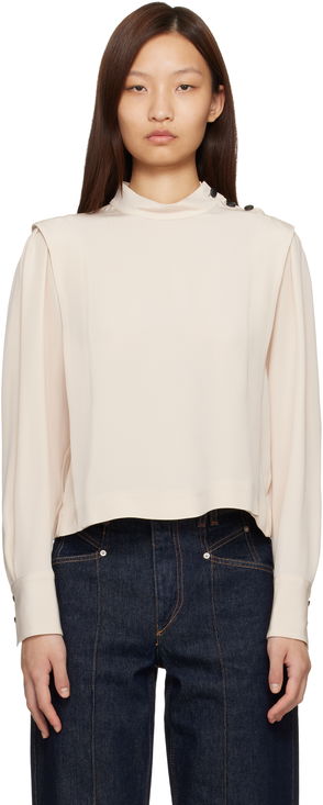 Isabel Marant's 'Felissa' blouse has wide shoulders that create a layered effect – the black buttons draw the eye. It's made from satin-crepe with a mockneck and relaxed fit.