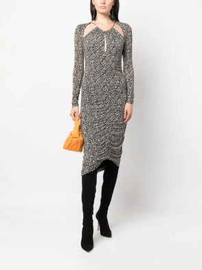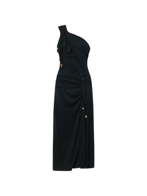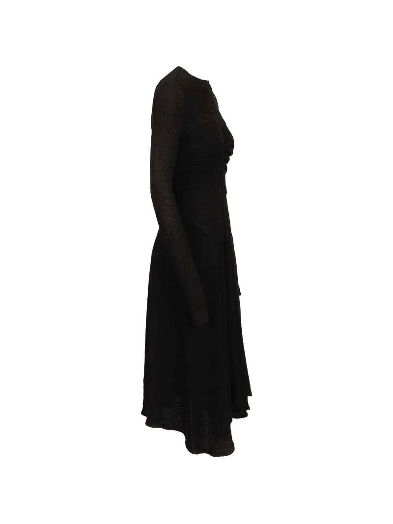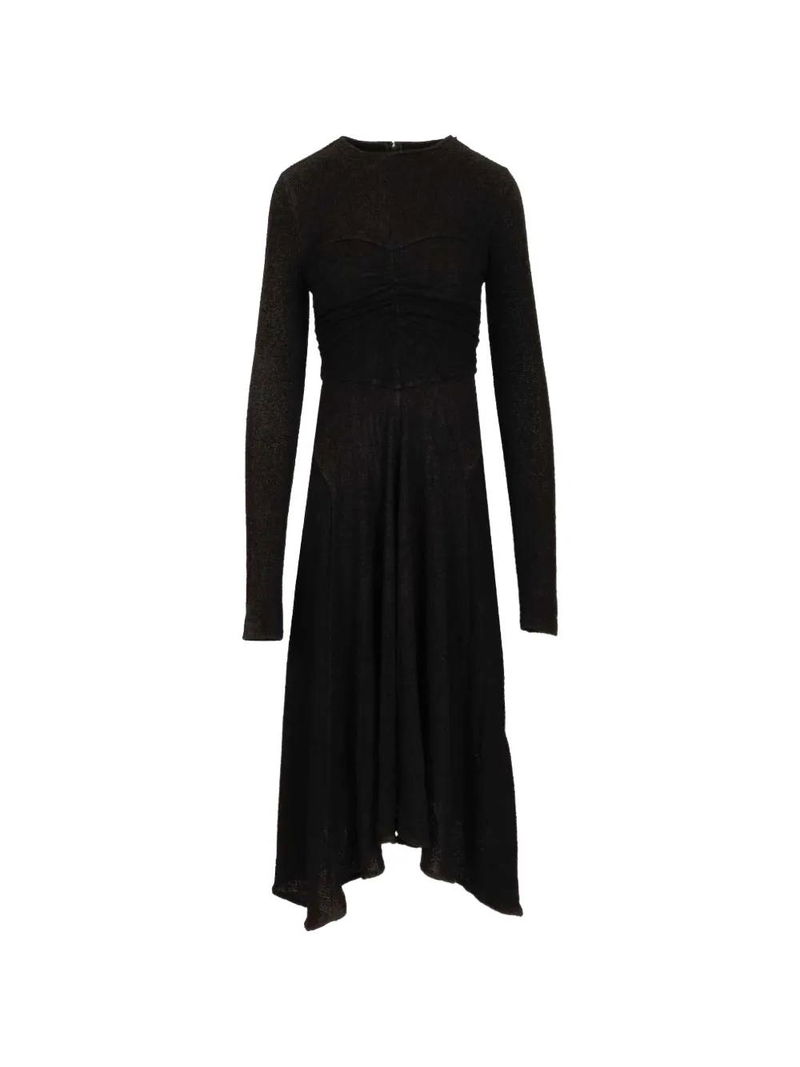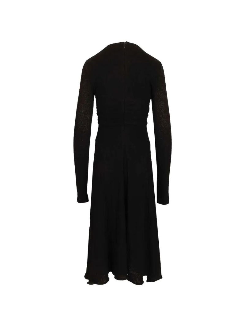 Black gathered detail long sleeves rear zip fastening asymmetric hem.