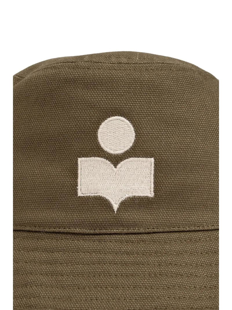 cotton olive green embroidered logo decorative stitching dropped narrow brim