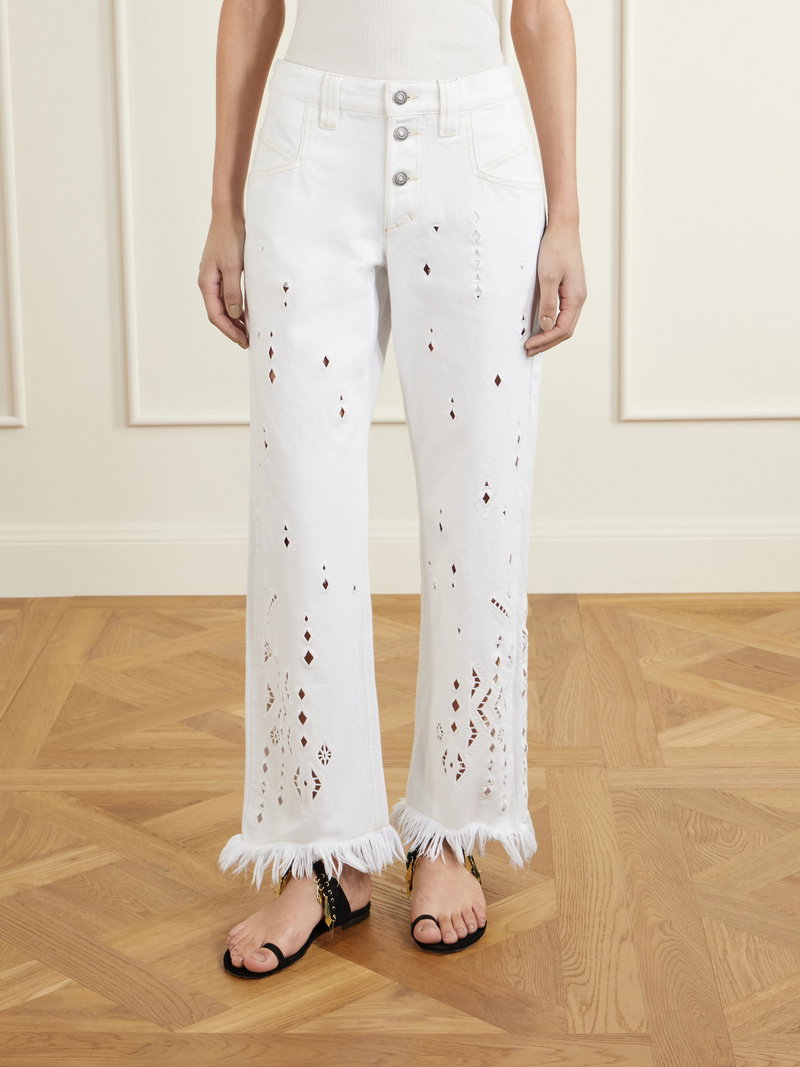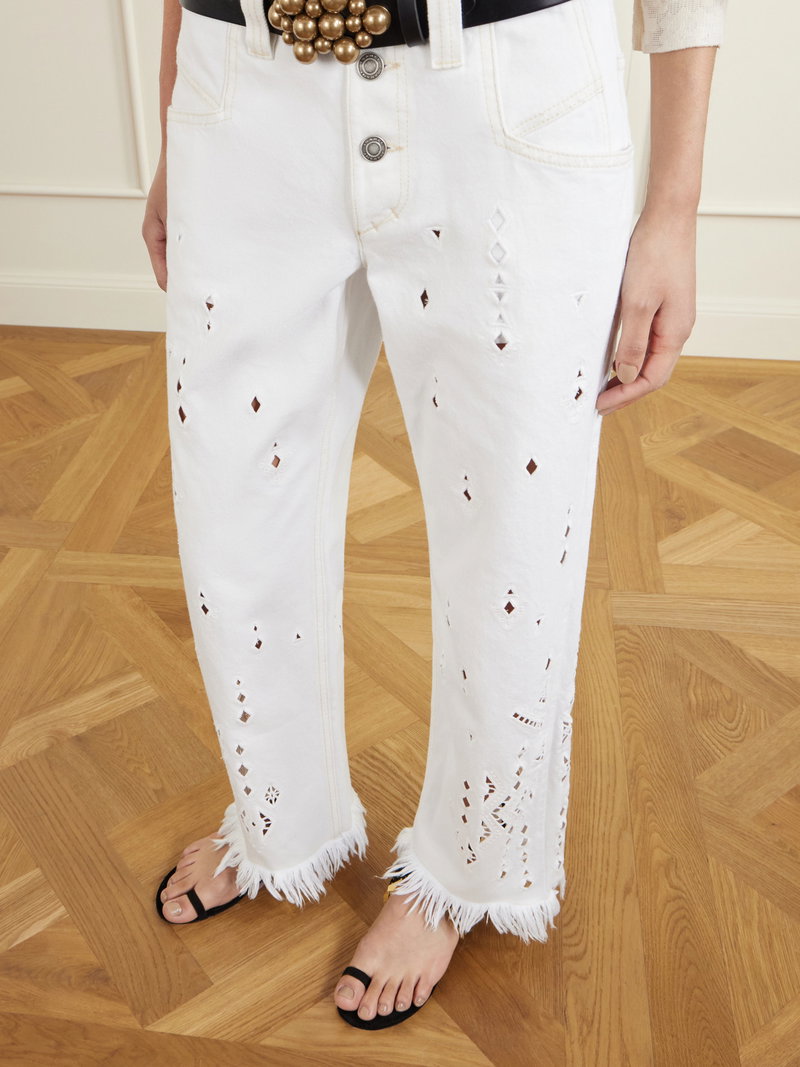 High-waist Fringed Embroidered Organic Straight-leg Jeans