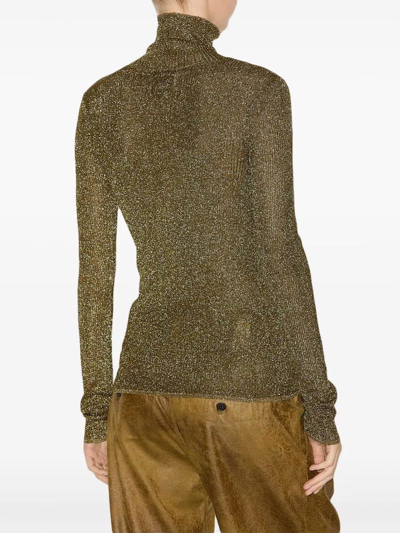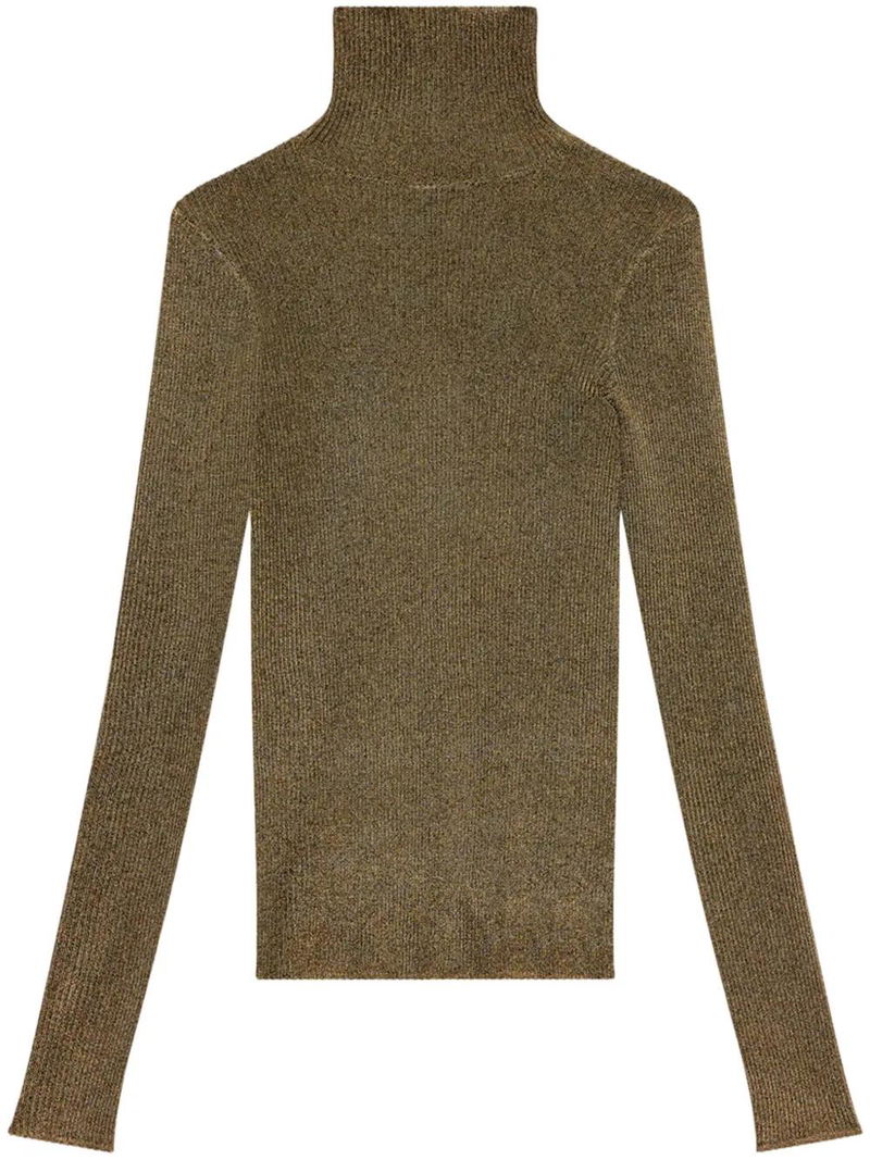 khaki fine knit metallic effect roll neck long sleeves straight hem